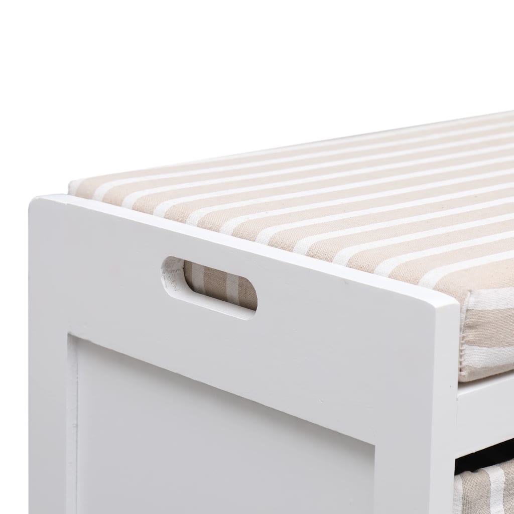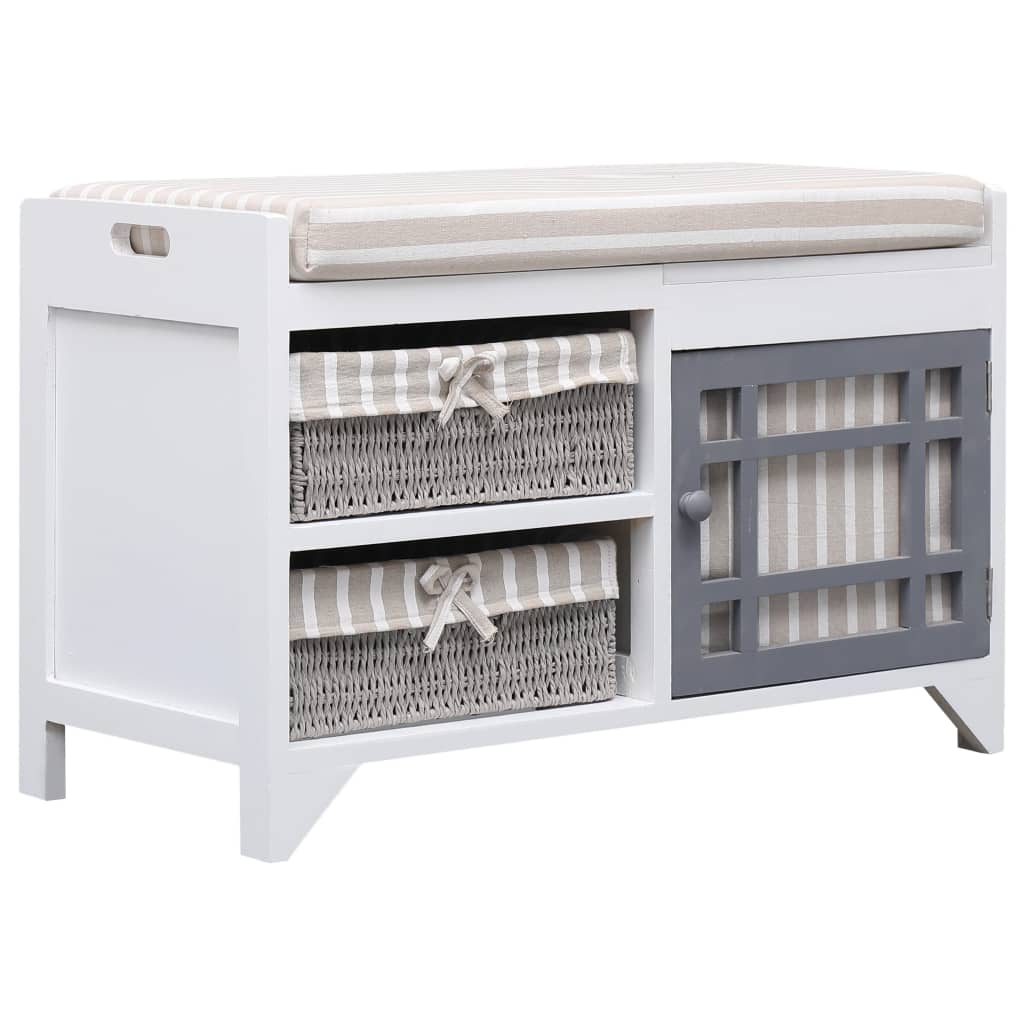 Schaffen Sie ein warmes und einladendes Ambiente direkt neben Ihrer Tür mit unserer Flurbank! Mit Schubladen und einem Kissen auf der Oberseite ist diese Flurbank eine auffällige Ergänzung zu Ihrem Flur, Wohnzimmer oder Schlafzimmer! Die Flurbank aus Paulownia-Holz und MDF ist sehr stabil und langlebig. Dank des weichen Kissens können Sie auch bequem darauf sitzen. Diese Eingangsbank bietet mit 2 Schubladen und 1 Tür auch viel Stauraum und lässt sich leicht mit einem feuchten Tuch abwischen. Unsere Lagerbank ist bereits montiert; keine Montage erforderlich.