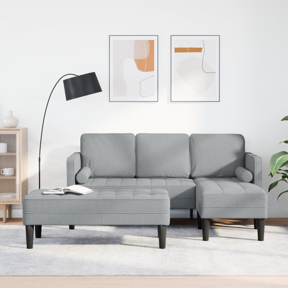 Das L-frmige Sofa Set ist ein Must-Have fr dein Wohnzimmer. Es bietet Platz fr vier Erwachsene und vereint Komfort und Style perfekt. Der Polyesterstoff sieht klasse aus und ist super praktisch, da er widerstandsfhig gegen Verblassen und Flecken ist - perfekt fr den Alltag. Mit seinem modularen Design kannst du es ganz easy umstellen, damit es in deinen Raum passt. Ob beim Lesen oder Entspannen, dieses Sofa Set macht alles mglich und gibt deinem Zuhause einen frischen Look.