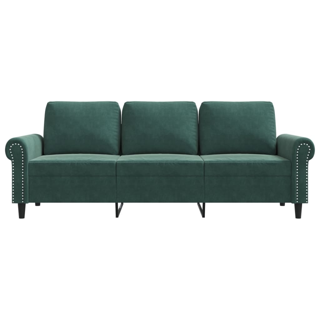 Dieses 3-Sitzer-Sofa bietet einen ausgezeichneten Platz zum Plaudern, Lesen, Fernsehen oder einfach nur zum Entspannen. Es wird ein echter Blickfang in deinem Zuhause sein. Weicher Samt: Samt ist ein weicher, luxuriöser Stoff, der sich durch seinen dichten Flor aus gleichmäßig geschnittenen Fasern auszeichnet, die einen glatten Flor haben. Samt fühlt sich unverwechselbar weich an und ist angenehm zu berühren.Robustes und stabiles Gestell: Das Metallgestell verleiht dem Polstersofa Robustheit und Stabilität.Bequemes Sitzerlebnis: Dank der dick gepolsterten Sitzflächen, der Armlehnen und der Rückenkissen ist das Sofa sehr bequem.Auffälliges Design: Mit seinem schlichten und dennoch modernen Design ist dieses Sofa ein echter Hingucker in deinem Zimmer.