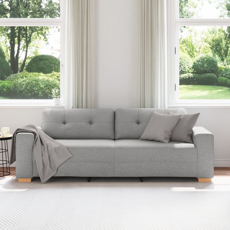 Das moderne wolken-graue 3-Sitzer Sofa vereint Komfort und Stil - ein absolutes Must-Have für jedes Wohnzimmer. Es hat einen klaren, modernen Look und ist mit super weichem Polyester bezogen, perfekt zum Entspannen oder für gesellige Abende mit Freunden. Modernes Ästhetik: Das schicke und minimalistische Design des Sofas bringt frischen Wind in deine Einrichtung und bietet gleichzeitig eine stylische Sitzgelegenheit für bis zu drei Personen. Komfort und Unterstützung: Gut gepolstert mit Schaumfüllung, sorgt es für ein super kuscheliges Erlebnis - perfekt für gesellige Zusammenkünfte mit Familie und Freunden. Solide Konstruktion: Hergestellt aus hochwertigem Holz, sorgt der robuste Rahmen für Stabilität und Strapazierfähigkeit - für jahrelangen, zuverlässigen Gebrauch. Einfache Pflege: Der fleckenresistente Stoff macht es kinderleicht, Verschüttungen zu reinigen, und hält das Sofa lange frisch. Kompakte Gestaltung: Mit einer Länge von 180 cm ist dieses Sofa genau richtig für kleine Räume und bietet trotzdem genügend Sitzplätze.