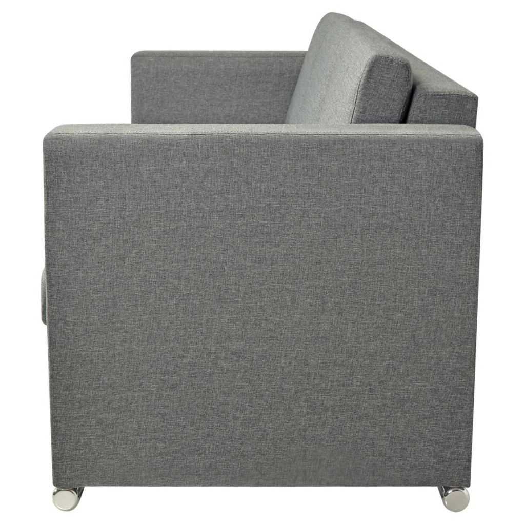 - Material: Holzrahmen + Stoffbezug + verchromte Beine