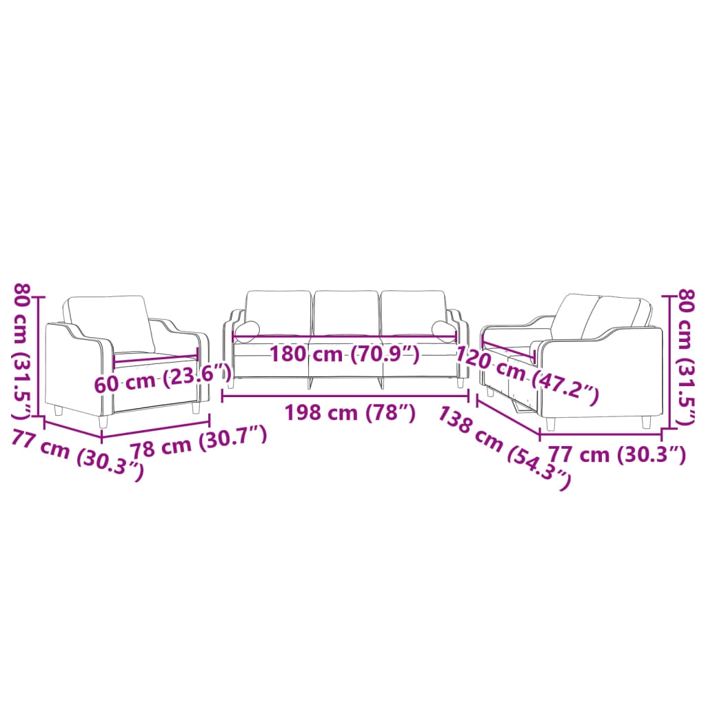 Diese Sofagarnitur bietet einen ausgezeichneten Platz zum Plaudern, Lesen, Fernsehen oder einfach nur zum Entspannen. Sie wird ein echter Blickfang in deinem Zuhause sein. Strapazierfähiger Stoff: Der Stoff zeichnet sich durch einen schlichten und sauberen Look aus und ist gleichzeitig atmungsaktiv und langlebig.Robustes und stabiles Gestell: Das Gestell aus Sperrholz und Metall verleiht der Sofagarnitur Robustheit und Stabilität. Bequemes Sitzerlebnis: Mit dick gepolsterten Sitzflächen, Armlehnen und Rückenkissen versehen, ist das Sofa sehr bequem. Praktische Rollkissen: Die Rollkissen werten nicht nur deine Einrichtung auf, sondern sorgen auch für zusätzlichen Sitz- oder Liegekomfort.