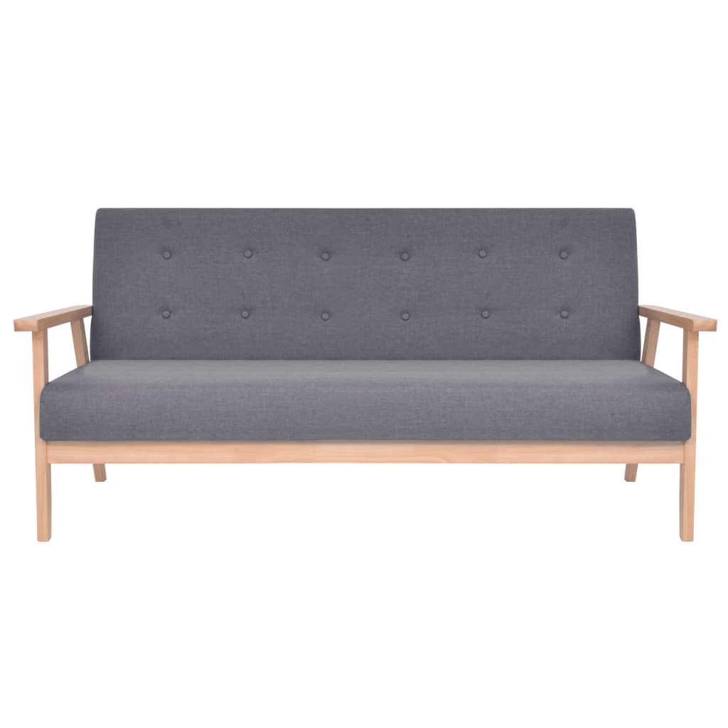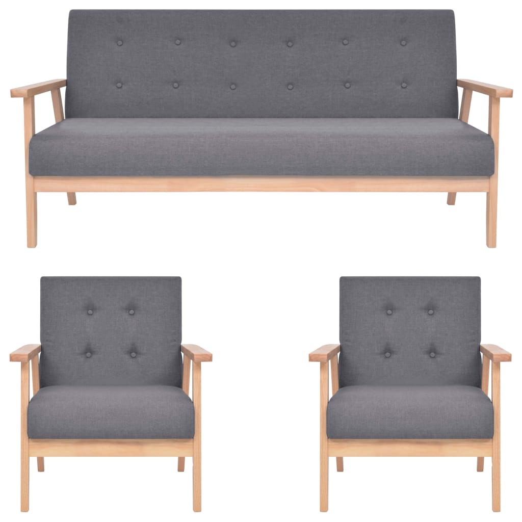 Diese sehr bequeme Sofagarnitur hat ein zurückhaltendes Design und ist zum Lesen, Fernsehen oder einfach nur zum Entspannen ideal geeignet. Der Sessel und das 3-Sitzer-Sofa sind mit weichem Polyester bezogen und für zusätzlichen Komfort mit Schaumstoff gepolstert. Mit seinem massiven Holzrahmen ist der Sessel stabil und langlebig. Die Montage ist sehr einfach. Die Lieferung umfasst 2 Sessel und 1 Sofa.