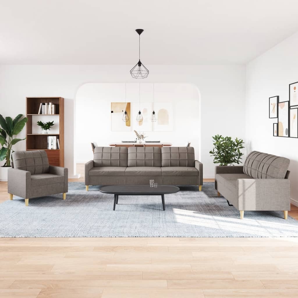 Diese Sofagarnitur bietet einen ausgezeichneten Platz zum Plaudern, Lesen, Fernsehen oder einfach nur zum Entspannen. Sie wird ein echter Blickfang in deinem Zuhause sein. Weiches und strapazierfähiges Material: Polyestergewebe fühlt sich weich an, ist atmungsaktiv sowie strapazierfähig und sorgt so für höchsten Komfort und Behaglichkeit. Robuster und stabiler Rahmen: Der Metallrahmen verleiht dem Stoffsofa Robustheit und Stabilität. Bequemes Sitzerlebnis: Dank der dick gepolsterten Sitzflächen, der Armlehnen und der Rückenkissen ist das Sofa sehr bequem.