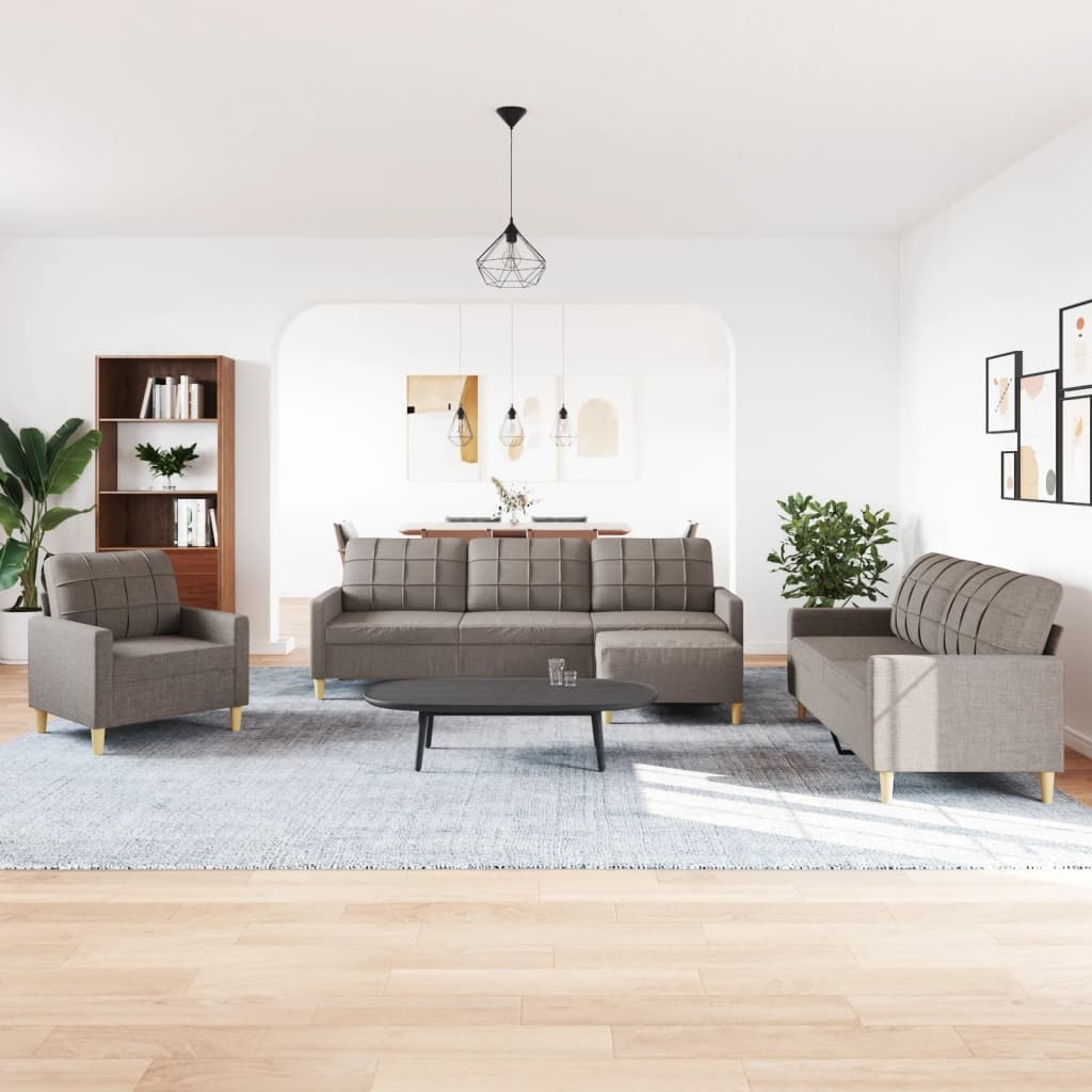 Diese Sofagarnitur bietet einen ausgezeichneten Platz zum Plaudern, Lesen, Fernsehen oder einfach nur zum Entspannen. Sie wird ein echter Blickfang in deinem Zuhause sein. Weiches und strapazierfähiges Material: Polyestergewebe fühlt sich weich an, ist atmungsaktiv sowie strapazierfähig und sorgt so für höchsten Komfort und Behaglichkeit. Robuster und stabiler Rahmen: Der Metallrahmen verleiht dem Stoffsofa Robustheit und Stabilität. Bequemes Sitzerlebnis: Dank der dick gepolsterten Sitzflächen, der Armlehnen und der Rückenkissen ist das Sofa sehr bequem. Vielseitiger Fußhocker: Der Hocker bietet Platz zum Ausruhen der Füße beim Liegen auf dem Sofa, kann aber auch als zusätzliche Sitzgelegenheit in deinem Zimmer dienen. Darüber hinaus eignet er sich durch sein schlichtes Design und seine kompakte Größe für fast alle Wohnräume.