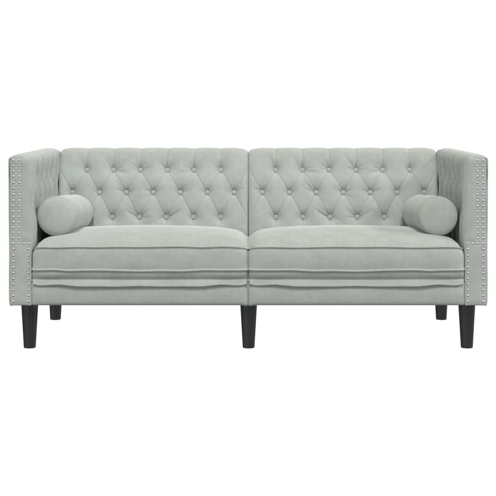 Dieses 2-Sitzer Chesterfield-Sofa ist der ideale Platz zum Plaudern, Lesen, Fernsehen oder einfach nur zum Entspannen. Es wird ein echter Blickfang in deinem Zuhause sein. Weiches und komfortables Material: Der Samtstoff hat eine weiche und sanfte Oberfläche, die sich angenehm auf der Haut anfühlt und höchsten Komfort bietet.Bequemes Sitzerlebnis: Dank der dick gepolsterten Sitzflächen, Armlehnen und Rückenkissen ist das Sofa sehr bequem. Die im Lieferumfang enthaltenen Nackenrollen verschönern nicht nur deine Einrichtung, sondern werden auch zusätzlichen Sitz- und Liegekomfort bieten.Chesterfield-Stil: Mit der klassischen Rückenlehne und den Armlehnen mit Knopfheftung – beide auf gleicher Höhe – wertet der Clubsessel jeden Raum auf und sorgt für Stil und Komfort.Stützbeine: Der Polstersessel wird von stabilen Beinen getragen, die seine Stabilität und Standfestigkeit gewährleisten.