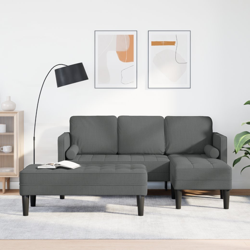 Das dunkelgraue L-frmige Sofa Set ist ein super Teil, das perfekt in moderne Wohnungen passt und genau das bietet, was du brauchst, um cool abzuhngen. Ideal, um dein Wohnzimmer oder groe Sitzbereiche aufzupeppen. Es schafft eine gemtliche Atmosphre und bietet Platz fr bis zu fnf Erwachsene. Die schne dunkelgraue Farbe ergnzt dein Dekor und sorgt fr einen klassischen Look. Es ist ganz leicht zu pflegen, dank der abnehmbaren Kissen. Hol dir dieses stylische Sofa nach Hause und mach dich bereit fr entspannte Stunden mit Freunden oder Familie.