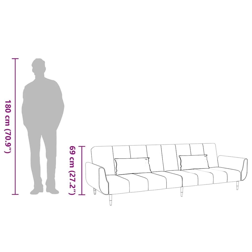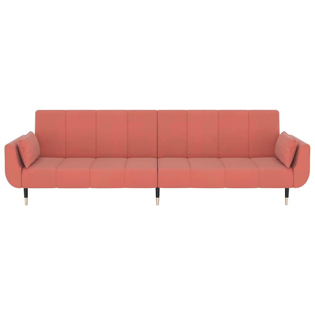 Dieses Sofa lässt sich einfach in ein Bett umwandeln. So können Sie je nach Ihren Vorlieben zwischen Sitz-, Lounge- oder Schlafposition auswählen. Es ist das ideale Möbelstück, wenn Sie zusätzlichen Schlafplatz für Freunde oder Übernachtungsgäste benötigen. Weiches und komfortables Material: Samt besitzt eine zarte Textur und fühlt sich weich und angenehm an.Verstellbare Rückenlehne: Sie können die zwei separaten Rückenlehnen teilweise oder ganz nach unten schieben, um den idealen Platz für ein Nickerchen oder ein Doppelbett zu schaffen.Robust und stabil: Der Holzrahmen und die Metallbeine des Schlafsofas sorgen für Robustheit und Stabilität.Zwei Kissen für mehr Komfort: Zu Ihrer Bequemlichkeit sind auch zwei Kissen im Lieferumfang enthalten.
