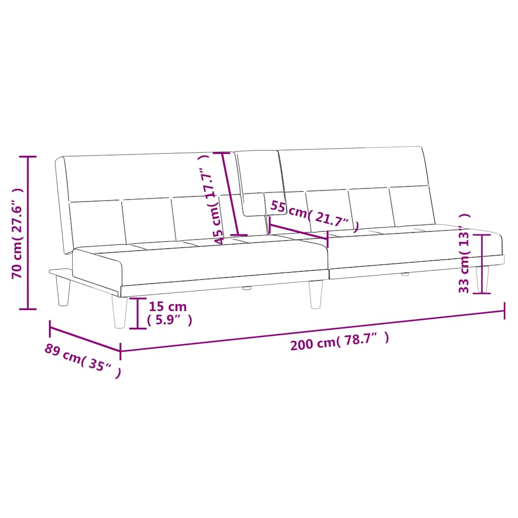 Dieses Schlafsofa eignet sich perfekt für die Übernachtung von Gästen und bietet tagsüber eine bequeme Sitzgelegenheit. Strapazierfähiger Stoff: Der Stoff weist eine schlichte und saubere Optik auf und ist außerdem atmungsaktiv und langlebig.Verstellbare Rückenlehne: Die Rückenlehne lässt sich in 3 Positionen verstellen, um deinen Anforderungen gerecht zu werden.Bequeme Sitzgelegenheit: Mit dick gepolsterten Sitzflächen und Rückenlehnen versehen, ist die Schlafcouch sehr bequem.Praktisches Design: Das Tagesbett ist mit einem klappbaren Teetisch mit zwei Getränkehaltern versehen. Zudem ist der Teetisch mit 2 Arten von USB-Anschlüssen ausgestattet, die zum Aufladen von Handys, Tablets, Laptops usw. verwendet werden können.Robuster und stabiler Rahmen: Der Rahmen aus Sperrholz verleiht der Schlafcouch Robustheit und Stabilität. Gut zu wissen:Das Produkt verfügt über einen USB-Anschluss, aber die zertifizierte 5-V-USB-Stromquelle ist nicht im Lieferumfang enthalten.Um die Montage so einfach wie möglich zu machen, wird jedes Produkt mit einer Anleitung geliefert.