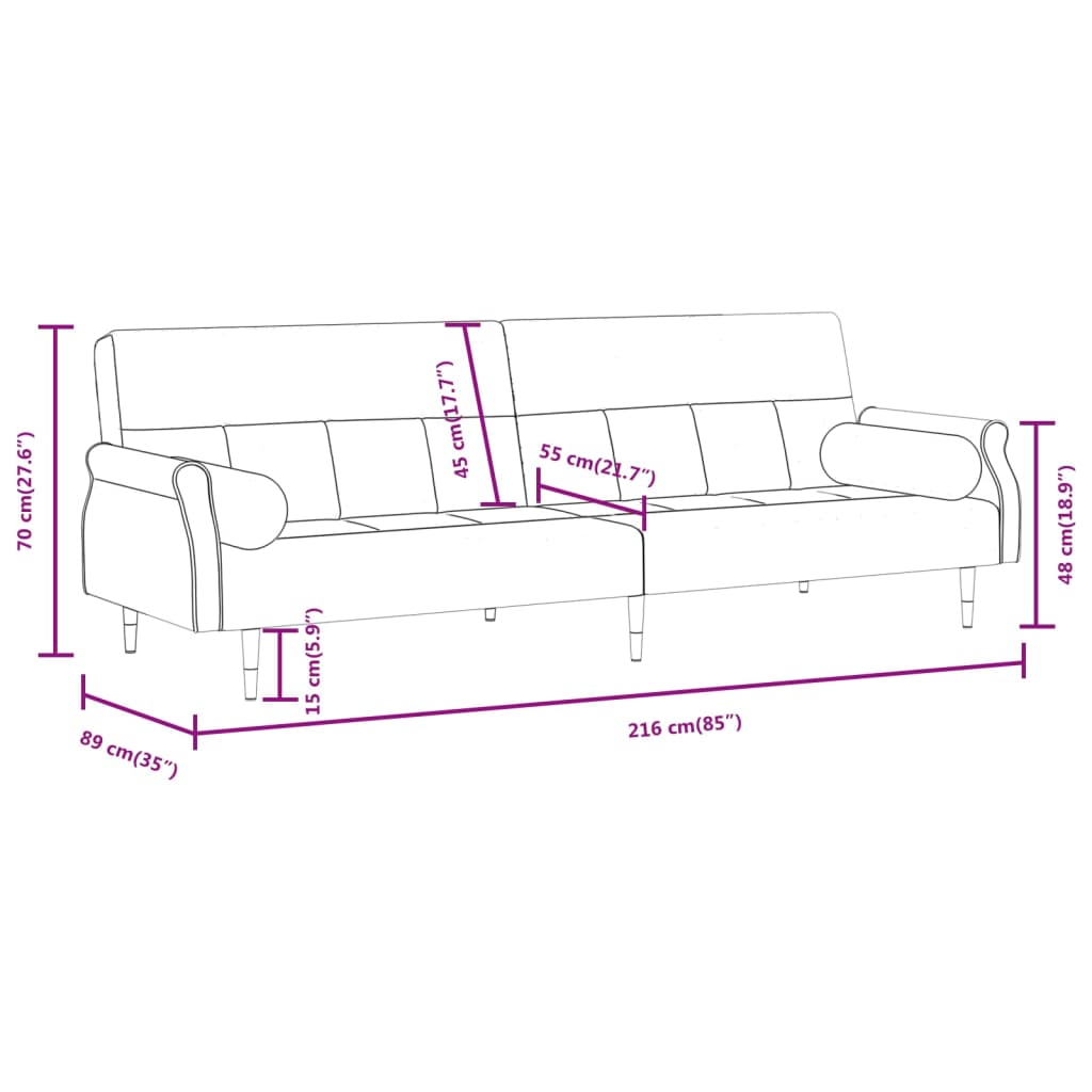Dieses Schlafsofa eignet sich perfekt für die Übernachtung von Gästen und bietet tagsüber eine bequeme Sitzgelegenheit. Samtsofa: Samt ist ein weicher, luxuriöser Stoff, der sich durch seinen dichten Flor aus gleichmäßig geschnittenen Fasern auszeichnet. Samt fühlt sich unverwechselbar weich an und ist angenehm zu berühren.Verstellbare Rückenlehne: Du kannst die beiden separaten Rückenlehnen des Bettsofas teilweise oder ganz nach unten schieben, um einen idealen Platz für ein Nickerchen oder ein Doppelbett zu schaffen.Bequemes Sitzen: Das Schlafsofa ist mit Rücken- und Armlehnen ausgestattet, um dir ein bequemes Sitzerlebnis zu bieten.Robuster und stabiler Rahmen: Der Rahmen aus Sperrholz verleiht der Schlafcouch Robustheit und Stabilität.Metallfüße: Die Metallfüße verleihen dem Schlafsofa eine angenehme Optik und sorgen gleichzeitig für Stabilität. Gut zu wissen:Um die Montage so einfach wie möglich zu machen, wird jedes Produkt mit einer Anleitung geliefert.
