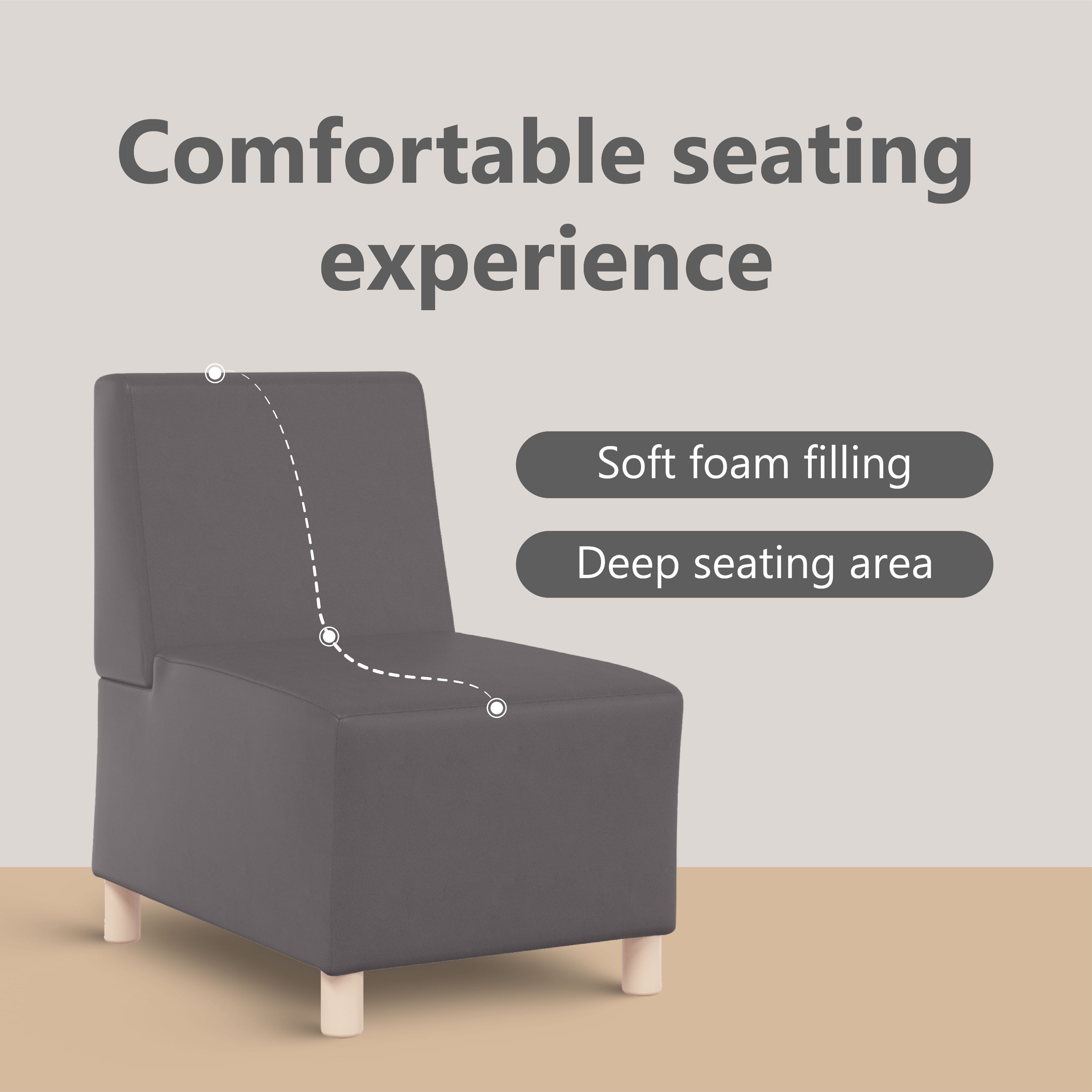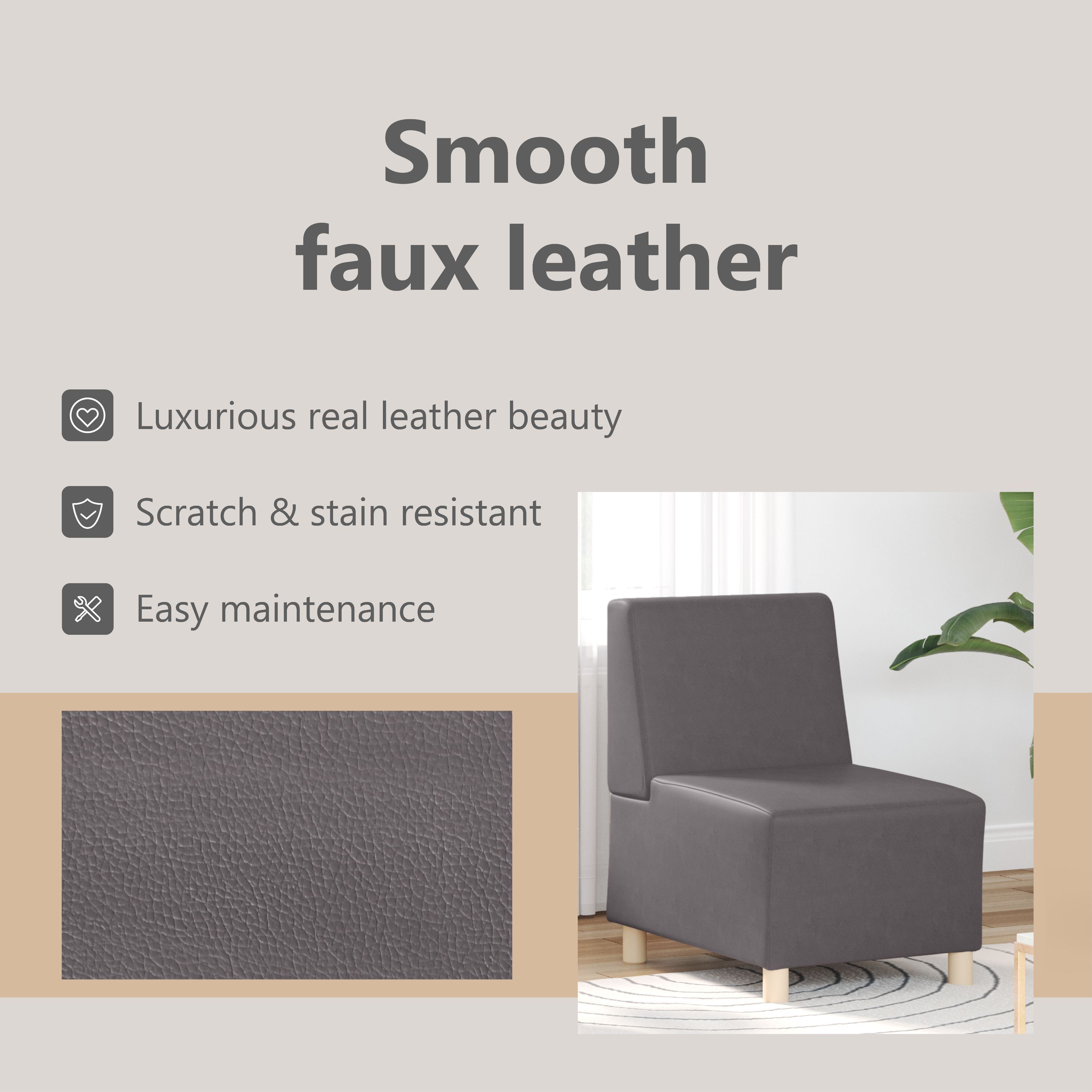 Erlebe außergewöhnlichen Komfort und Stil mit dem Sofasessel, perfekt zum Plaudern, Lesen, Fernsehen oder einfach nur zum Entspannen. Langlebig und pflegeleicht: Kunstleder ist ein äußerst langlebiges und schmutzabweisendes Material, das sich mit einem feuchten Tuch leicht reinigen lässt. Durch die glatte Oberfläche weist es die Eleganz von Echtleder auf.Robustes und stabiles Gestell: Der Sperrholzrahmen und die stützenden Beine des Sofas sorgen für Stabilität, sodass du ein bequemes Sitzerlebnis genießen kannst, ohne dich um die Stabilität sorgen zu müssen.Vielseitig einsetzbar: Ob im Wohnzimmer, im Schlafzimmer, im Arbeitszimmer oder im Empfangsbereich, das Sofa fügt sich mühelos in jede Umgebung ein. Von großzügigen Räumen bis hin zu intimen Ecken, sein flexibles Design sorgt dafür, dass es jeden Raum ohne Einschränkungen aufwertet.Auffälliges Design: Das Sofa besticht durch die Kombination von Kunstleder und Sperrholzrahmen, die die Verschmelzung der verschiedenen Stilelemente unterstreicht und sich sowohl an moderne als auch an traditionelle Innenräume anpasst.