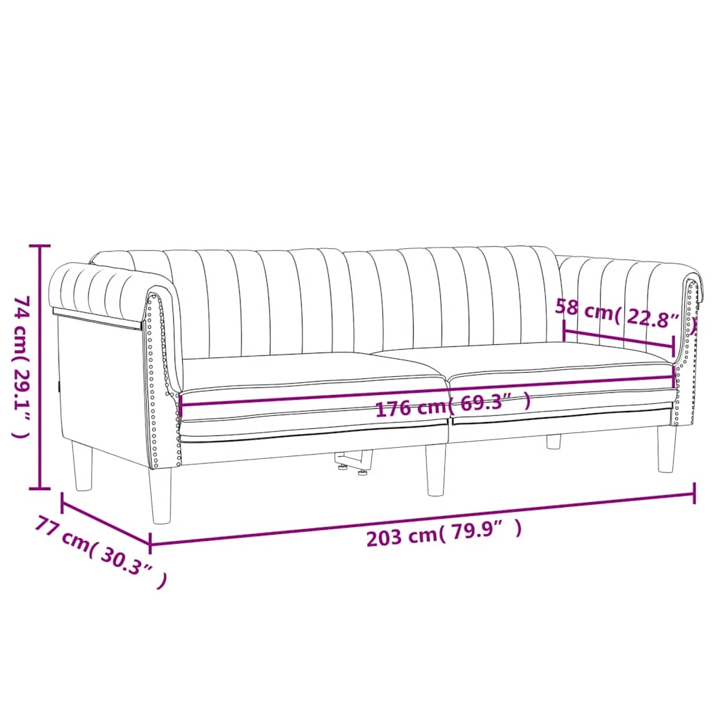 - Gesamtabmessungen: 203 x 77 x 74 cm (B x T x H)