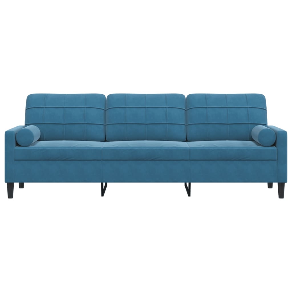 Dieses 3-Sitzer-Sofa bietet einen ausgezeichneten Platz zum Plaudern, Lesen, Fernsehen oder einfach nur zum Entspannen. Es wird ein echter Blickfang in deinem Zuhause sein. Weiches und komfortables Material: Der Samtstoff hat eine weiche und sanfte Oberfläche, die sich angenehm auf der Haut anfühlt und höchsten Komfort bietet.Robustes und stabiles Gestell: Das Metallgestell verleiht dem Sofa Robustheit und Stabilität.Bequemes Sitzerlebnis: Dank der dick gepolsterten Sitzflächen, der Armlehnen und der Rückenkissen ist das Sofa sehr bequem.Abnehmbare Kissenbezüge: Dank des Reißverschlusses lassen sich die Bezüge dieser Kissen bei Bedarf leicht abnehmen und reinigen.Auffälliges Design: Mit seinem schlichten und dennoch modernen Design ist dieses Sofa ein echter Hingucker in deinem Zimmer.
