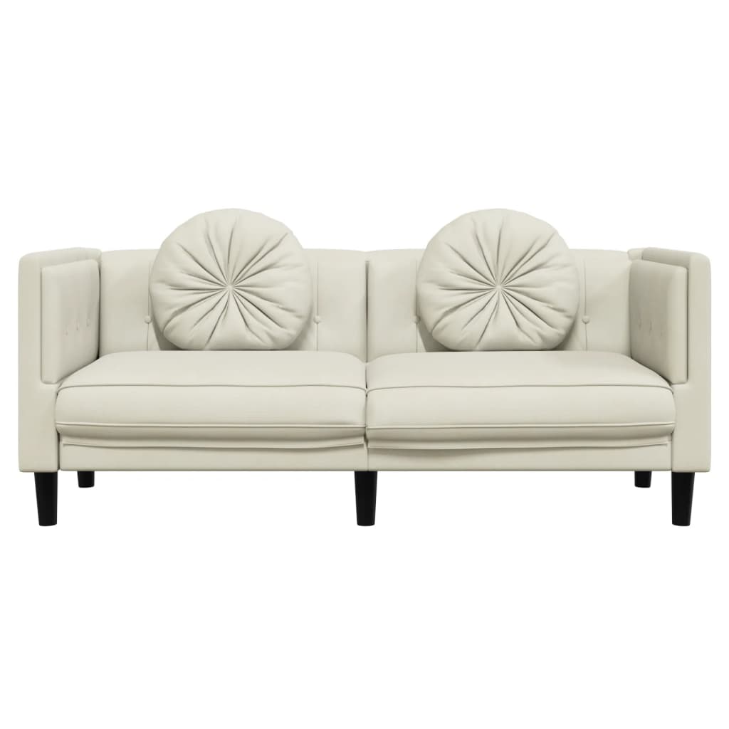 Dieses 2-Sitzer-Sofa bietet einen ausgezeichneten Platz zum Plaudern, Lesen, Fernsehen oder einfach nur zum Entspannen. Es wird ein echter Blickfang in deinem Zuhause sein. Weicher Samt: Samt ist ein weicher, luxuriöser Stoff, der sich durch seinen dichten Flor aus gleichmäßig geschnittenen Fasern auszeichnet, die einen glatten Flor haben. Samt fühlt sich unverwechselbar weich an und ist angenehm zu berühren.Komfortables Sitzgefühl: Das Sofa ist mit dem dick gepolsterten Sitz, den Armlehnen, der Rückenlehne und den runden Kissen sehr komfortabel.Stützbeine: Der Polstersessel wird von stabilen Beinen getragen, die seine Stabilität und Standfestigkeit gewährleisten.Auffälliges Design: Mit ihrem schlichten und dennoch modernen Design ist diese Wohnzimmergarnitur ein echter Hingucker in deinem Zimmer.