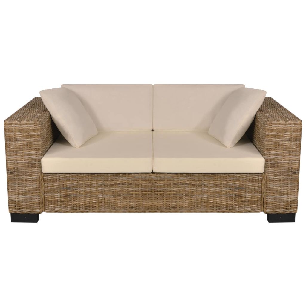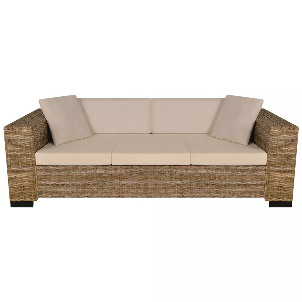 Dieses Rattan-Sofa vereint Stil und Funktionalität und ist eine tolle Ergänzung für Ihr Zuhause! Dank des hochwertigen, echten Rattans sind die Sofas leicht zu reinigen, strapazierfähig und für den täglichen Gebrauch bestens geeignet. Sie verfügen über einen stabilen Holzrahmen, der haltbar und sehr stabil ist. Die dicken Sitz- und Rückenpolster und Kissen sind sehr bequem und dank ihrer abnehmbaren Bezüge sogar waschbar. Darüber hinaus ergänzen die breiten Armlehnen den Sitzkomfort. Die Lieferung beinhaltet ein 3-Sitzer-Sofa, ein 2-Sitzer-Sofa, fünf Sitzkissen, vier Rückenpolster und vier Kissen.