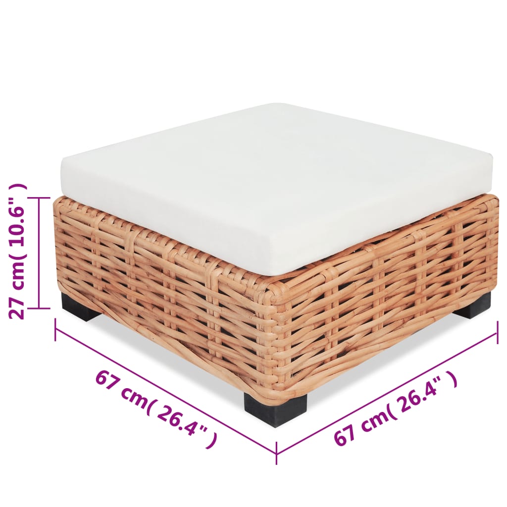 Diese stilvolle und funktionale Sofagarnitur stellt eine großartige Bereicherung für Ihr Wohnzimmer oder Ihren Wintergarten dar! Der Rahmen ist mit natürlichem Rattan bedeckt - dieses Material besticht nicht nur durch seine natürliche Optik und Haptik und die dekorative Flechtstruktur, sondern es steht auch für Langlebigkeit. Die Sofabeine sind aus hochwertigem Mahagoniholz gefertigt. Zudem sorgen die Kissen und Polster für zusätzlichen Komfort und eine gemütliche Atmosphäre. Das komplette Set verleiht Ihrem Zuhause einen rustikalen Akzent und wird leicht aufgebaut. Die Lieferung umfasst 1 Sofa-Eckelement, 2 Sofa-Mittelstücke, 2 Hocker, 2 Couchtische, 3 Sitzpolster, 4 Rückenpolster, 2 Hockerpolster und 2 Kissen.