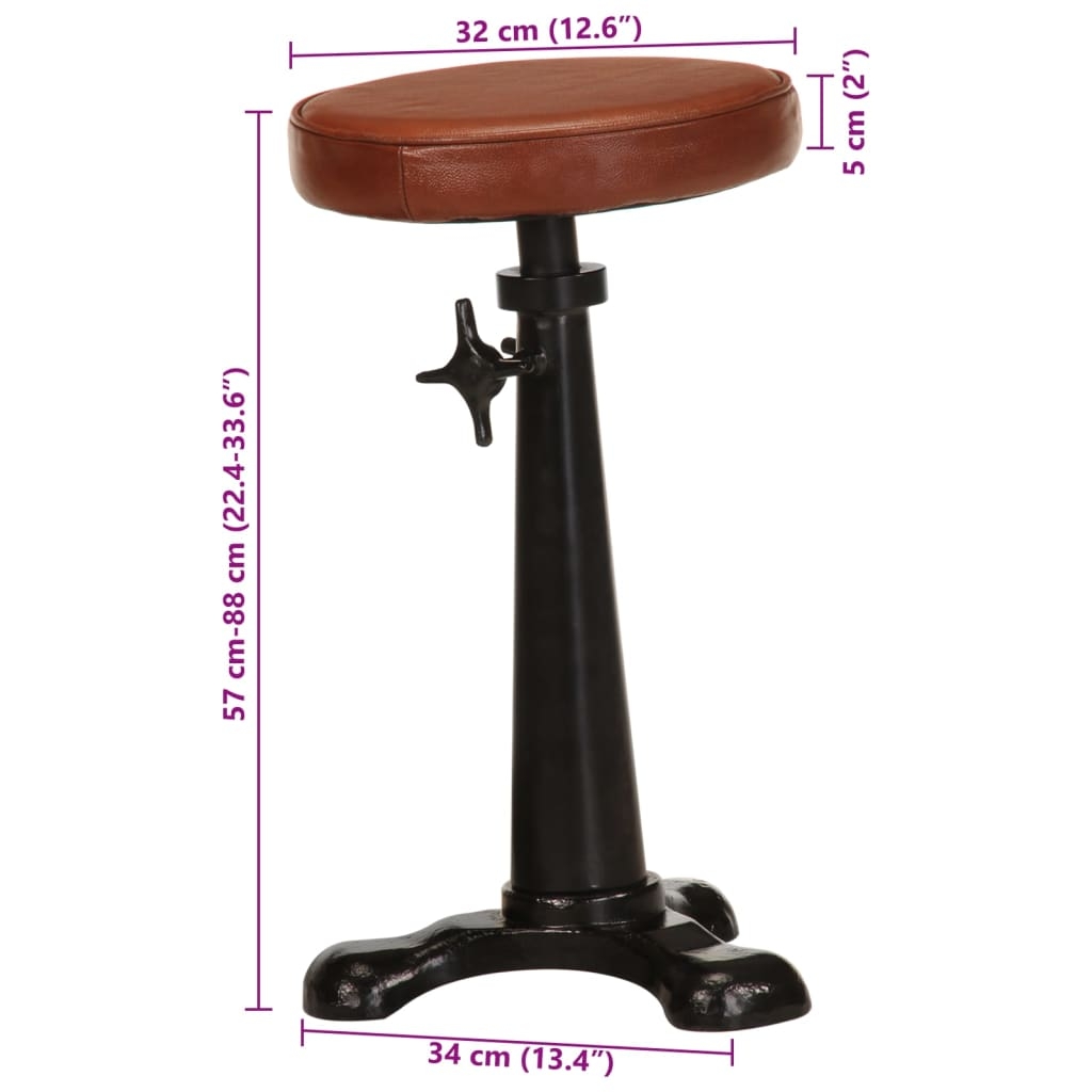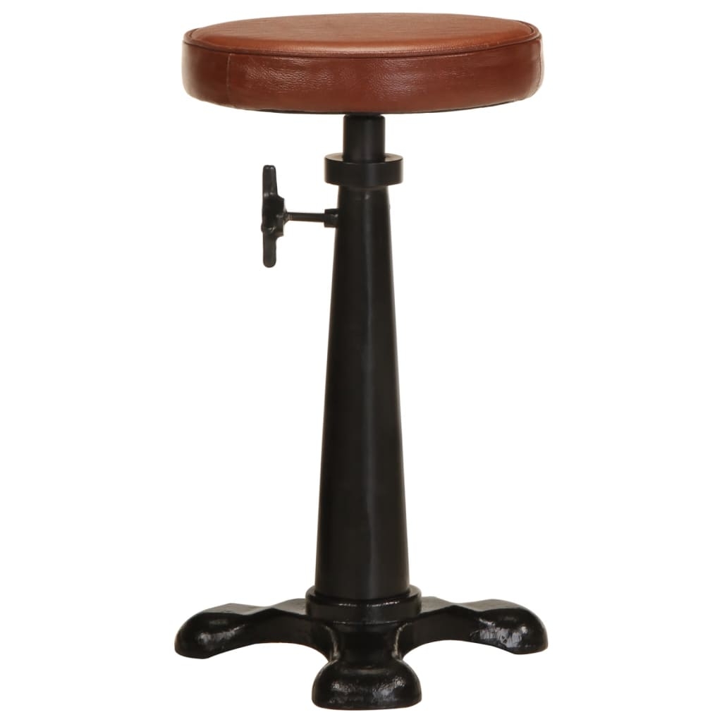 Dank ihres einzigartigen und markanten Design stellen diese weichen Barhocker eine tolle Bereicherung für jedes Interieur dar. Aus Echtleder und Gusseisen gefertigt, sind diese Barstühle langlebig und bequem. Die Sitzflächen aus echtem Ziegenleder fühlen sich weich an und sorgen für ein komfortables Sitzgefühl. Der Eisenrahmen trägt zu ihrer Robustheit bei und die Hocker lassen sich leicht umstellen, um zu jeder Einrichtung zu passen. Dank der verstellbaren Höhe können Sie stets die bequemste Position zum Entspannen finden. Bitte beachten: Das Echtleder macht jeden dieser Barstühle einzigartig bzw. leicht verschieden vom nächsten Exemplar. Die Lieferung erfolgt nach dem Zufallsprinzip.