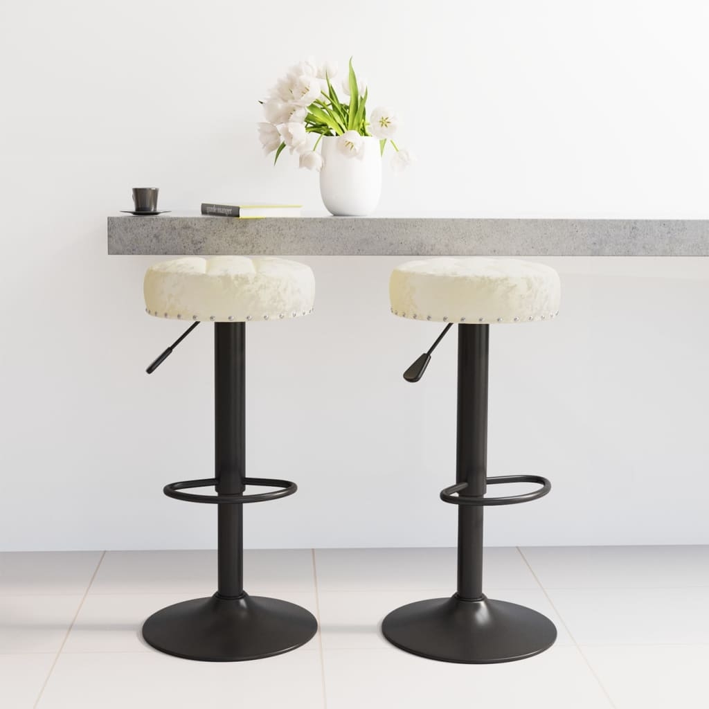 Genießen Sie ein Glas Wein, essen Sie einen Happen oder entspannen Sie sich einfach auf diesen Barhockern. Mit weichem Samt bezogen, sorgen diese Barstühle für optimalen Sitzkomfort. Das Gestell aus pulverbeschichtetem Stahl bietet hohe Stabilität, während die eingebaute Fußstütze für zusätzlichen Sitzgenuss sorgt. Darüber hinaus lassen sich diese Hocker dank der Gasdruckfeder in der Höhe verstellen und sind eine perfekte Ergänzung zu jeder Bar bzw. jedem Essbereich.