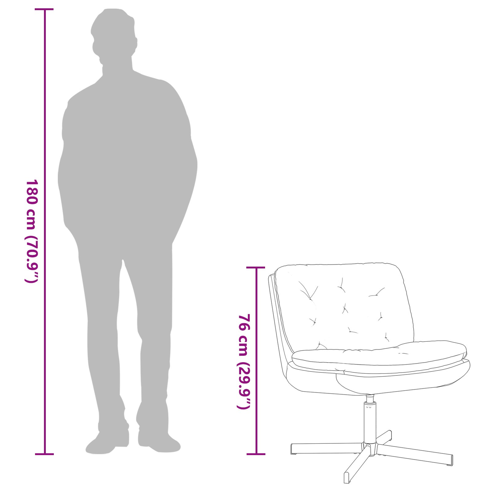Dieser schwenkbare Relaxstuhl bringt Farbe und Praktikabilität in dein Wohnzimmer oder Schlafzimmer. Das bequeme Design, der weiche Samtbezug und das stabile Metallgestell sorgen dafür, dass er in jedem modernen Zuhause gut aussieht und du super bequem sitzt. Er eignet sich perfekt zum Entspannen, für’s Lesen oder einfach um deinem Zuhause mit einem Hauch von Luxus das gewisse Etwas zu verleihen. Er passt perfekt in deine cozy Ecke und harmoniert toll mit minimalistischer Einrichtung, was Stil und Funktion mühelos kombiniert. Materialien: Dieser Stuhl besteht aus hochwertigem Samt, fühlt sich fantastisch an und bringt Luxus in jeden Raum. Die Weichheit des Samts sorgt für ein angenehmes Sitzgefühl. Der stabile Metallrahmen sorgt dafür, dass er gut aussieht und lange hält. Enthaltene Komponenten: Kommt mit einem schlanken, gepolsterten Sitzkissen für zusätzlichen Komfort und einer Samtrückenlehne, die ergonomische Unterstützung bietet. Außerdem hat er eine stabile Basis mit Metallfüßen für Stabilität und ermöglicht eine 360°-Drehung für einfache Bewegungen. Merkmale / Funktion / Design: Mit einer modernen Ausstrahlung hat dieser Stuhl eine drehbare Basis für mühelose Rotation, mit der du Dinge um dich herum ohne Anstrengung erreichen kannst. Sein ergonomisches Design fördert eine gute Haltung und verringert Verspannungen beim Sitzen über längere Zeit. Perfekt für jedes Setting, von lebhaften Familienräumen bis hin zu ruhigen Leseecken. Pflege & Wartung: Super easy zu reinigen; einfach mit einem trockenen Tuch abwischen. Vermeide scharfe Chemikalien, um den Samt weich und das Metall gut in Schuss zu halten.