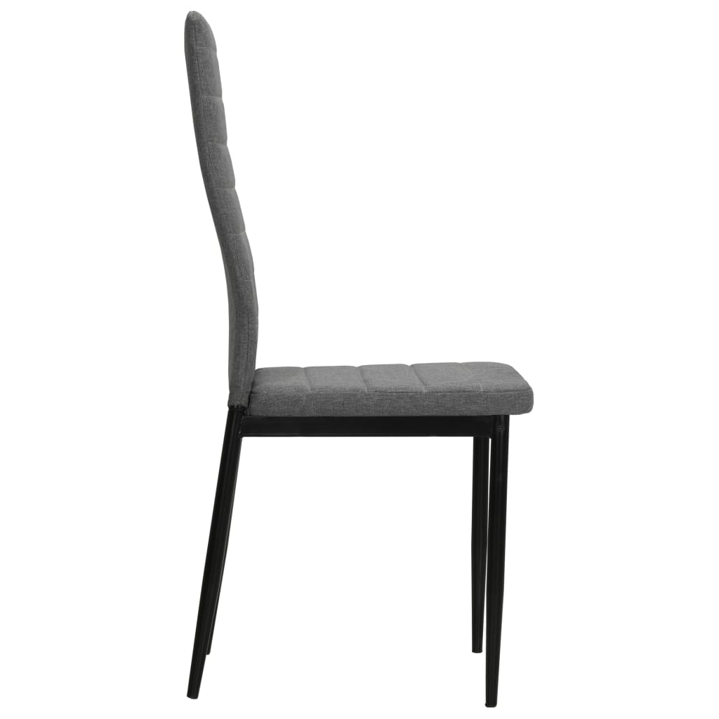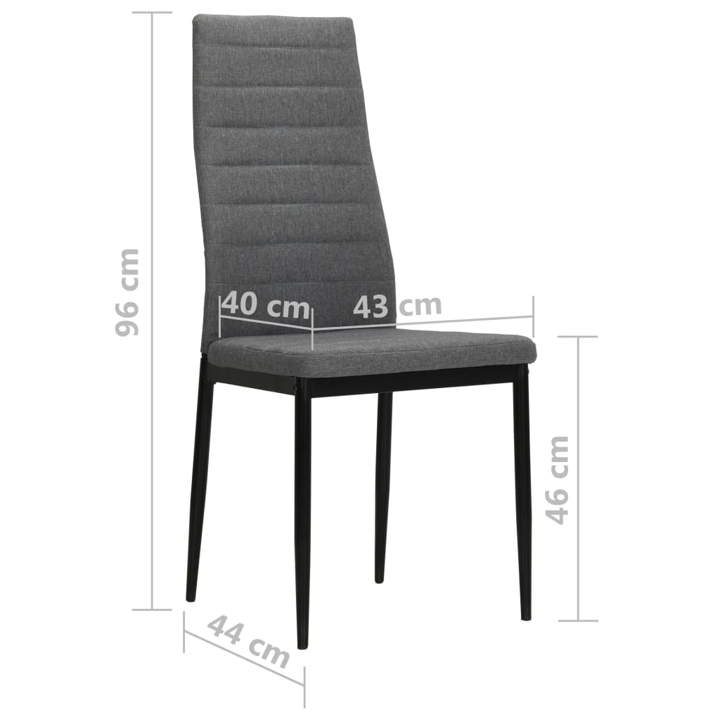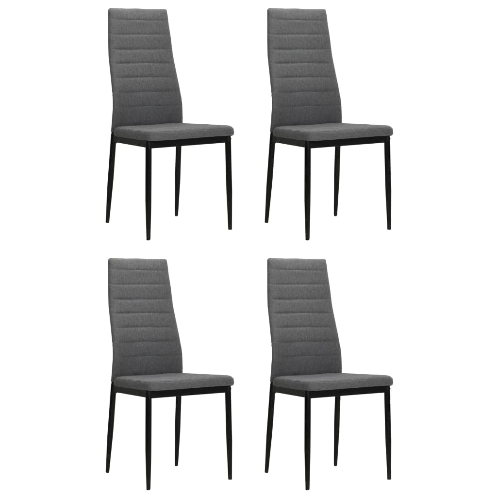 Das Set besteht aus 4 Esszimmerstühlen mit schlichtem, modernem Design, die perfekt zu jeder Einrichtung passen. Die Stühle verfügen über einen robusten Stahlrahmen und sind mit qualitativ hochwertigem Polyestergewebe bezogen, das sowohl weich als auch strapazierfähig ist. Dank ihrer dick gepolsterten Sitze und Rückenlehnen sowie ihres ergonomischen Designs sind diese Esszimmerstühle äußerst bequem. Die Montage der Stühle ist kinderleicht. Die Lieferung umfasst 4 Esszimmerstühle.
