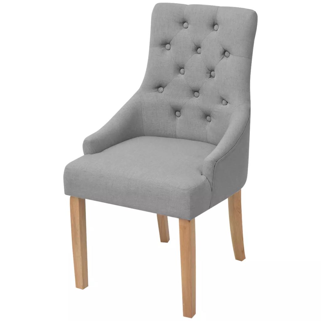 Diese hochwertigen Esszimmerstühle mit Armlehnen haben ein luxuriöses und anmutiges Design und werden Ihrer Inneneinrichtung einen Hauch von Stil und Eleganz verleihen. Die Stühle sind ideal für Mahlzeiten oder beim Lesen und Entspannen im Wohnzimmer. Dank der Eichenholzbeine sind die Stühle langlebig, robust und stabil. Die dick gepolsterten Sitze und Rückenlehnen tragen zu ihrem Sitzkomfort bei. Die Lieferung umfasst 4 Esszimmerstühle.