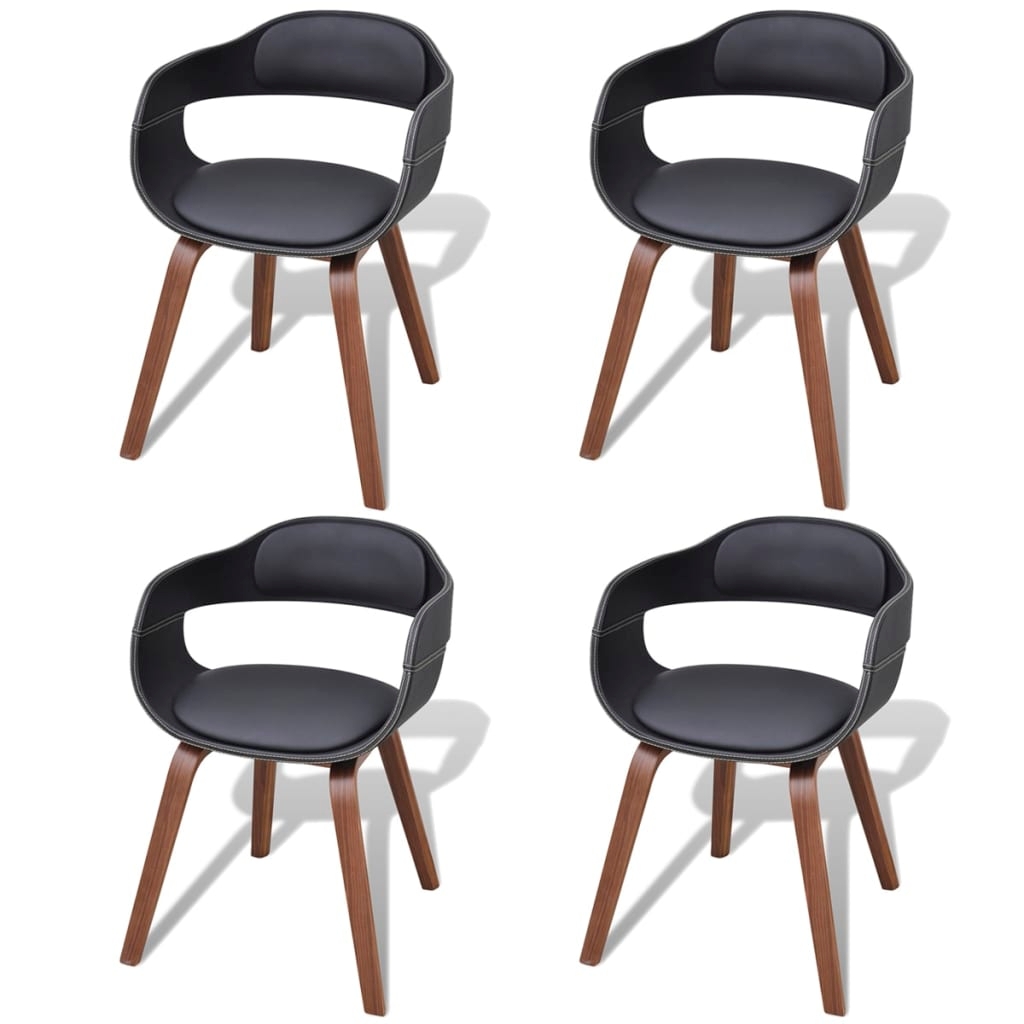 Dieses Esszimmerstuhl-Set mit Armlehnen, bezogen mit luxuriösem, qualitativ hochwertigem Kunstleder, ist ästhetisch und ergonomisch gestaltet, um eine dekorative wie bequeme Ergänzung für Ihr Esszimmer abzugeben. Dank der mit Schaumstoff bezogenen Sitzfläche und Rückenlehne, bieten unsere Stühle höchsten Sitzkomfort. Der qualitativ hochwertige Rahmen und die Füße aus Walnussholz machen die Stühle stabil und strapazierfähig und tragen zu ihrem stylischen Look bei. Die Lieferung umfasst 4 Esszimmerstühle.