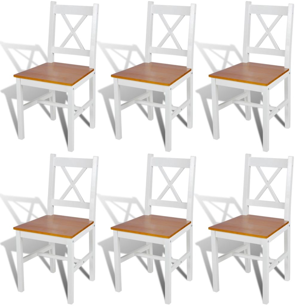 Dieses Set besteht aus 6 Esszimmerstühlen aus Holz, die ein schlichtes und dennoch elegantes Design aufweisen und eine großartige Ergänzung zu deinem Esszimmer oder deiner Küche sind.Die Stühle sind aus massivem Kiefernholz gefertigt, was sie sehr stabil und haltbar macht. Dank der glatten Lackierung lassen sich die Essstühle auch leicht reinigen. Für zusätzlichen Komfort sind sie ergonomisch gestaltet.Die Lieferung umfasst 6 Esszimmerstühle.