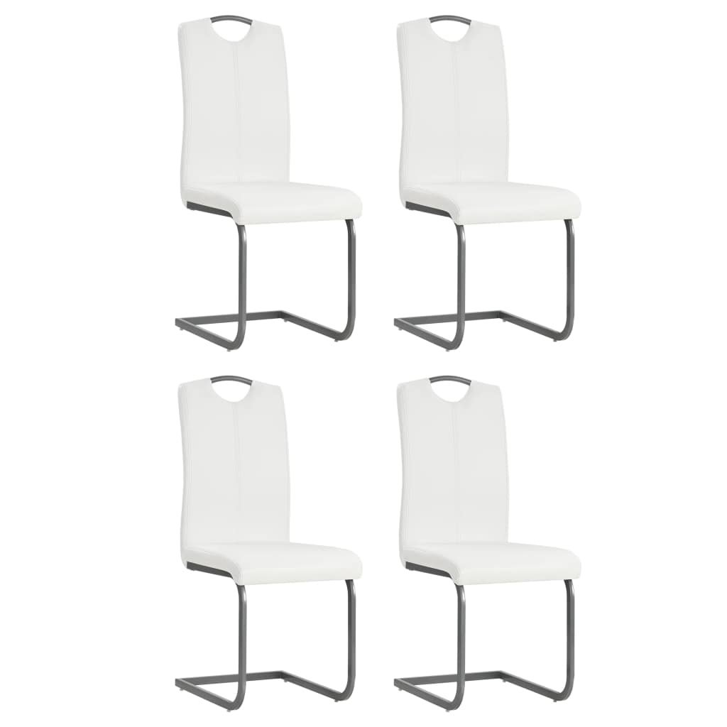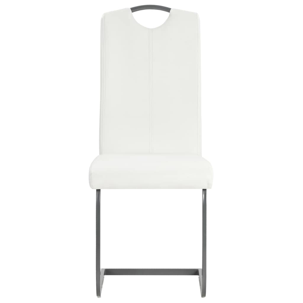 Unsere Freischwinger weisen eine elegante, stromlinienförmige Optik auf und machen daher eine gute Figur in jedem modernen Essbereich. Mit Schaumstoff gepolstert und mit hochwertigem Kunstleder bezogen, bieten die Stühle viel Komfort und verleihen deinem Interieur eine luxuriöse Optik und Haptik. Dank der Stahlgestelle sind die Stühle auch sehr stabil und haltbar. Die Stühle lassen sich einfach zusammenbauen. Die Lieferung umfasst 4 Esszimmerstühle.