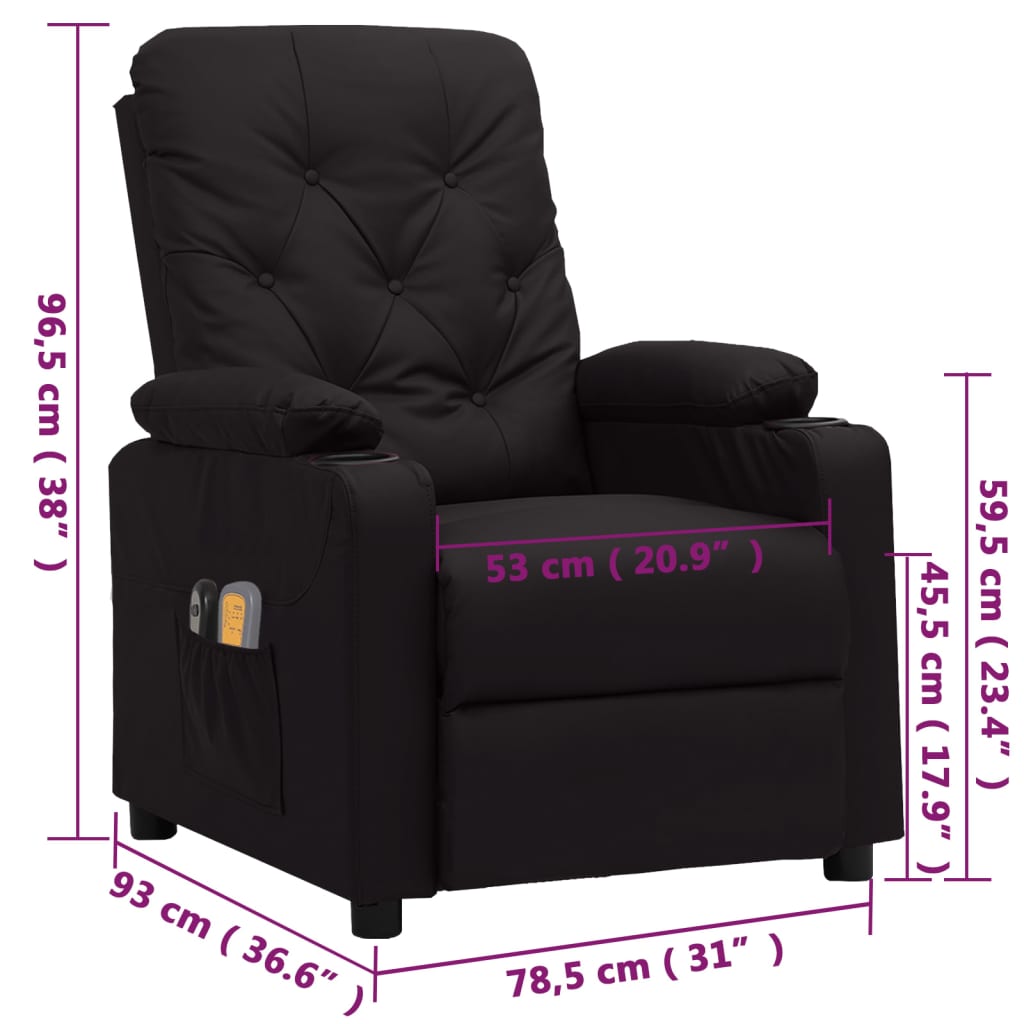 Lehne dich zurück und entspanne dich in diesem äußerst bequemen elektrischen Massagesessel! Elektrische Liegefunktion: Der Relaxsessel ist mit einem Elektromotor für die Liegefunktion ausgestattet. Er bietet 3 Liegepositionen und die Rückenlehne und das Fußteil lassen sich über die mitgelieferte 2-Tasten-Fernbedienung je nach Bedarf einstellen.Vibrationsfunktion: Mit den 6 Massagepunkten kann man eine gezielte Massage genießen. Außerdem ermöglicht die mitgelieferte Handsteuerung die Auswahl verschiedener Massageprogramme. Die Massagefunktion wird über den USB-Anschluss mit Strom betrieben, aber das zugelassene 5V-USB-Netzteil ist nicht im Lieferumfang enthalten. Durch die Heizfunktion werden Schmerzen an der Taille gelindert und die Blutzirkulation gefördert.Bequemes Sitzerlebnis: Der dick gepolsterte Sitz, die Rückenlehne und die breiten, mit Kunstleder bezogenen Armlehnen sorgen für ein behagliches und angenehmes Sitzgefühl. Künstliches Leder ist ein äußerst langlebiges Material. Es ist schmutzabweisend und lässt sich mit einem feuchten Tuch einfach reinigen. Durch die glatte Oberfläche weist es die luxuriöse Schönheit von Echtleder auf.Solider und stabiler Rahmen: Der Rahmen aus Holz und Metall sorgt für eine solide Struktur und hohe Stabilität. Dieser TV-Sessel ist bequem und langlebig.
