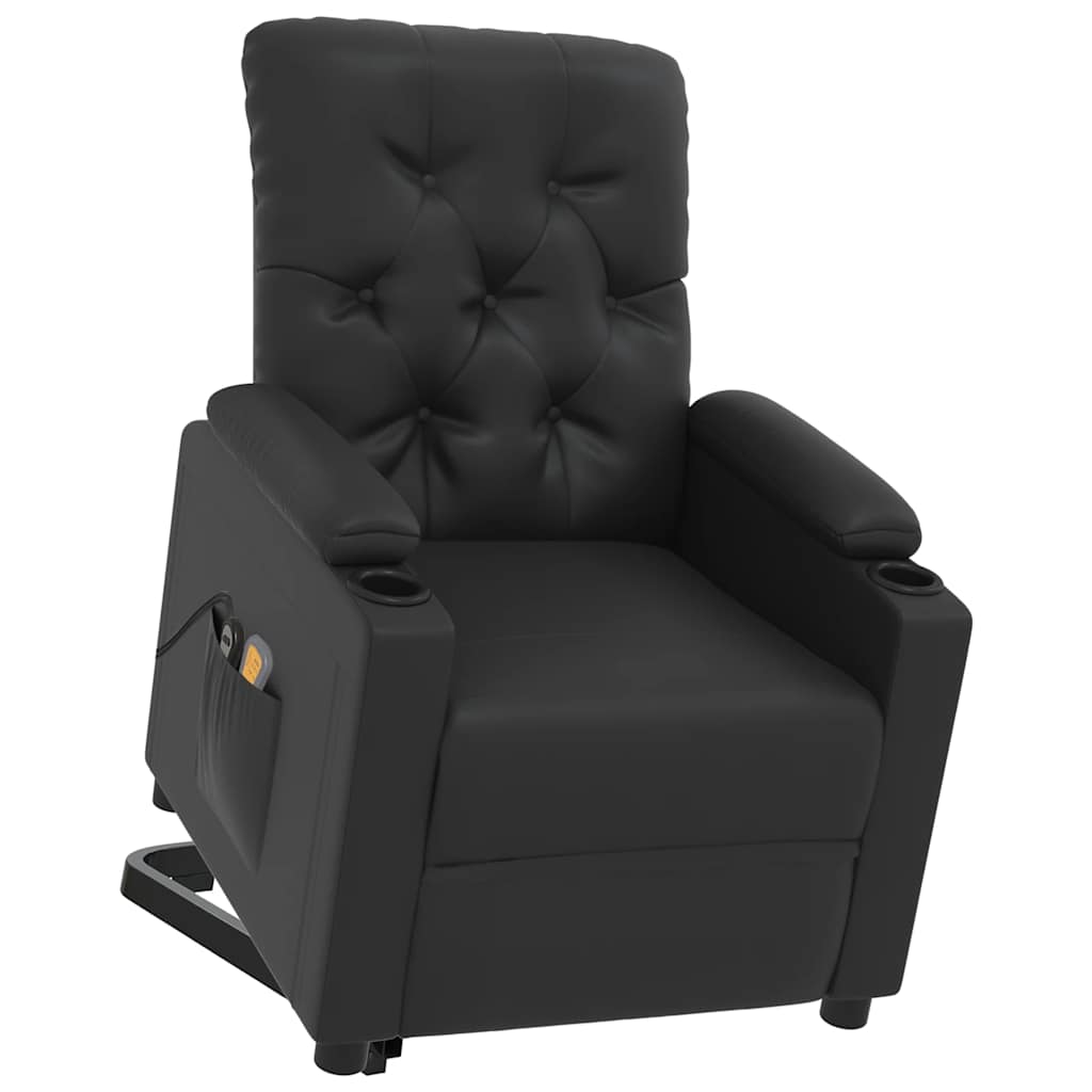 Lehne dich zurück und entspanne dich in diesem äußerst bequemen Massagesessel mit Aufstehhilfe! Manuelle Liegefunktion: Der Sessel kann manuell in 3 Positionen verstellt werden, so dass die Rückenlehne und der Fußteil je nach Bedarf eingestellt werden können.Elektrische Aufstehhilfe: Dieser Relaxsessel ist mit einem Elektromotor zum Anheben ausgestattet. Dank der Aufstehhilfe, die den gesamten Sessel nach oben bringt, kannst du mit der 2-Knopf-Handsteuerung ganz einfach aufstehen, ohne deinen Rücken und deine Knie zu belasten.Vibrationsfunktion: Mit den 6 Massagepunkten kann man eine gezielte Massage genießen. Außerdem ermöglicht die mitgelieferte Handsteuerung die Auswahl verschiedener Massageprogramme. Die Massagefunktion wird über den USB-Anschluss mit Strom betrieben, aber das zugelassene 5V-USB-Netzteil ist nicht im Lieferumfang enthalten. Durch die Heizfunktion werden Schmerzen an der Taille gelindert und die Blutzirkulation gefördert.Bequemes Sitzerlebnis: Der dick gepolsterte Sitz, die Rückenlehne und die breiten, mit Kunstleder bezogenen Armlehnen sorgen für ein behagliches und angenehmes Sitzgefühl. Künstliches Leder ist ein äußerst langlebiges Material. Es ist schmutzabweisend und lässt sich mit einem feuchten Tuch einfach reinigen. Durch die glatte Oberfläche weist es die luxuriöse Schönheit von Echtleder auf.Solider und stabiler Rahmen: Der Rahmen aus Holz und Metall sorgt für eine solide Struktur und hohe Stabilität. Dieser TV-Sessel ist bequem und langlebig.