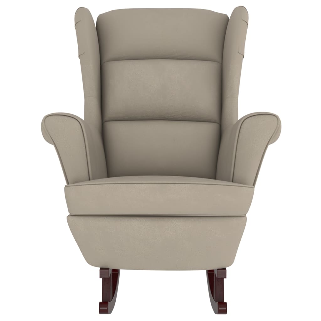 Dieser Schaukelstuhl ist eine tolle Kombination aus stilvollem Design und Funktion. Die Mischung aus hochwertiger Handwerkskunst und wertvollen Materialien macht den Sessel zu einem unverzichtbaren Stück in Ihrem Zuhause. Dank des gepolsterten Schaumstoffs, der mit weichem Samt bezogen ist, können Sie beim Sitzen optimalen Komfort genießen. Darüber hinaus wird dieser Wohnzimmerstuhl von Kufen aus massivem Gummibaumholz getragen, die für zusätzliche Stabilität sorgen.