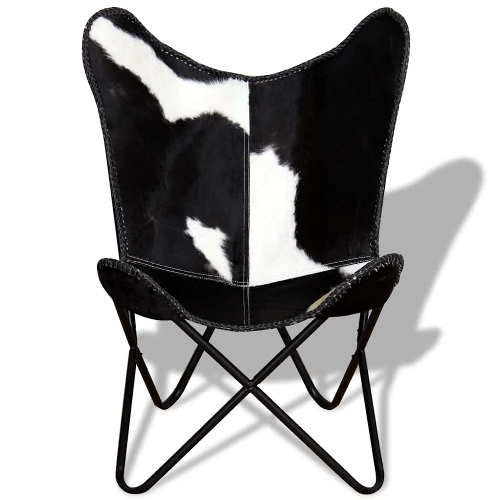 Der Butterfly Chair im Vintage-Stil ist aus echtem Kuhfell gefertigt und ergonomisch gestaltet, damit du dich nach einem anstrengenden Tag voll und ganz entspannen kannst. Sein ikonisches Schmetterling-Design ist sehr beliebt und fügt sich in jede Umgebung ein. Dieser klassische Butterfly-Stuhl aus Leder zeichnet sich durch eine sanft geschwungene Rückenlehne und Sitzfläche aus, die für hohen Sitzkomfort sorgen. Aus echtem Rindsleder gefertigt, ist dieser Retro-Stuhl im Butterfly- Design robust und langlebig. Die vier Ecken des Stuhls sind ebenfalls mit echtem Kuhfell versehen. Das robuste, pulverbeschichtete Eisengestell trägt zur Stabilität und Langlebigkeit des Sessels bei. Der Stuhl ist leicht und bequem. Wichtiger Hinweis: Die Farben und Markierungen des Kuhfells sind von Stück zu Stück unterschiedlich, sodass jedes Möbelstück ein Unikat ist; die Lieferung erfolgt nach dem Zufallsprinzip.