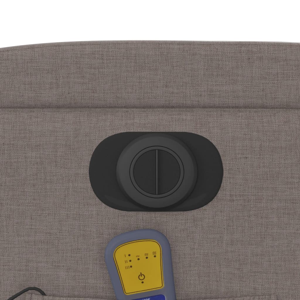 Lehne dich zurück und entspanne dich in diesem äußerst bequemen elektrischen Massagesessel mit Aufstehhilfe! Elektrische Aufstehhilfe: Dieser Relaxsessel ist mit einem Elektromotor zum Anheben ausgestattet. Dank der Aufstehhilfe, die den gesamten Sessel nach oben bringt, kannst du ganz einfach auf Knopfdruck aufstehen, ohne deinen Rücken und deine Knie zu belasten.Elektrische Liegefunktion: Dieser Relaxsessel ist mit einem Elektromotor ausgestattet, der Fußstütze und Rückenlehne durch einfaches Drücken des seitlichen Knopfes automatisch in jede gewünschte Position bringt. Diese Funktion ermöglicht eine maximale Neigung von 135 Grad. Darüber hinaus lässt sich die Rückenlehne auf Knopfdruck automatisch in die ursprünglichen Position zurückbringen.Vibrationsfunktion: Dank der 6 Massagepunkte genießt du eine gezielte Massage. Zudem lassen sich verschiedene Massageprogramme über die mitgelieferte Handsteuerung auswählen. Die Massagefunktion wird über den USB-Anschluss betrieben, der eine zertifizierte 5-V-USB-Stromquelle erfordert (nicht im Lieferumfang enthalten).Bequemes Sitzerlebnis: Die dick gepolsterte Sitzfläche, die Rückenlehne und die breiten Armlehnen sorgen für ein behagliches und wohliges Sitzgefühl. Der Bezug aus Stoff weist eine schlichte und saubere Optik auf und ist auch atmungsaktiv und langlebig.Praktische Getränkehalter und Seitentasche: Dieser Sessel verfügt über zwei praktische Becherhalter und eine Seitentasche, in der du wichtige Sachen griffbereit aufbewahren kannst.Solider und stabiler Rahmen: Der Rahmen aus Holz und Metall sorgt für eine solide Struktur und hohe Stabilität. Dieser TV-Sessel ist bequem und langlebig.