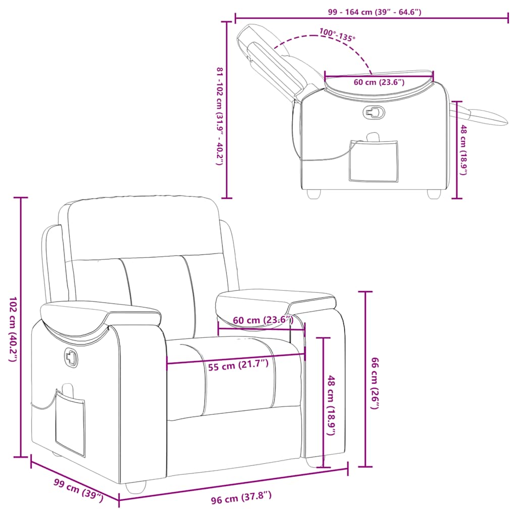 Lehnen Sie sich zurück und entspannen Sie sich in diesem äußerst bequemen Massagesessel! Manuelle Liegefunktion: Dieser Liegesessel verfügt über einen Griff auf der rechten Seite. Sie können die Fußstütze und die Rückenlehne durch einfaches Ziehen am Griff manuell in jede für Sie bequeme Position bringen. Diese Funktion ermöglicht eine maximale Neigung von 135 Grad. Zusätzlich lässt sich die Rückenlehne durch einfaches Ziehen am Griff schnell in die Ausgangsposition zurückstellen. Vibrationsfunktion: Die 6 Massagepunkte ermöglichen eine gezieltere Massage. Mit der mitgelieferten Handsteuerung können Sie verschiedene Massageprogramme auswählen. Die Massagefunktion wird über den USB-Anschluss mit Strom versorgt, ein zertifiziertes 5-V-USB-Netzteil ist jedoch nicht im Lieferumfang enthalten. Bequemes Sitzerlebnis: Die dick gepolsterte Sitzfläche, Rückenlehne und die breiten, mit Stoff bezogenen Armlehnen sorgen für ein behagliches und warmes Gefühl, während Sie sitzen. Der Stoff besticht durch seine schlichte und klare Optik und ist atmungsaktiv und strapazierfähig.Praktische Seitentasche: Dieser Sessel verfügt über eine Seitentasche für Ihre Fernbedienung oder um wichtige Gegenstände griffbereit aufzubewahren.Solider und stabiler Rahmen: Der Rahmen aus Holz und Metall sorgt für eine starke Struktur und Stabilität. Dieser Relaxsessel ist bequem und langlebig.