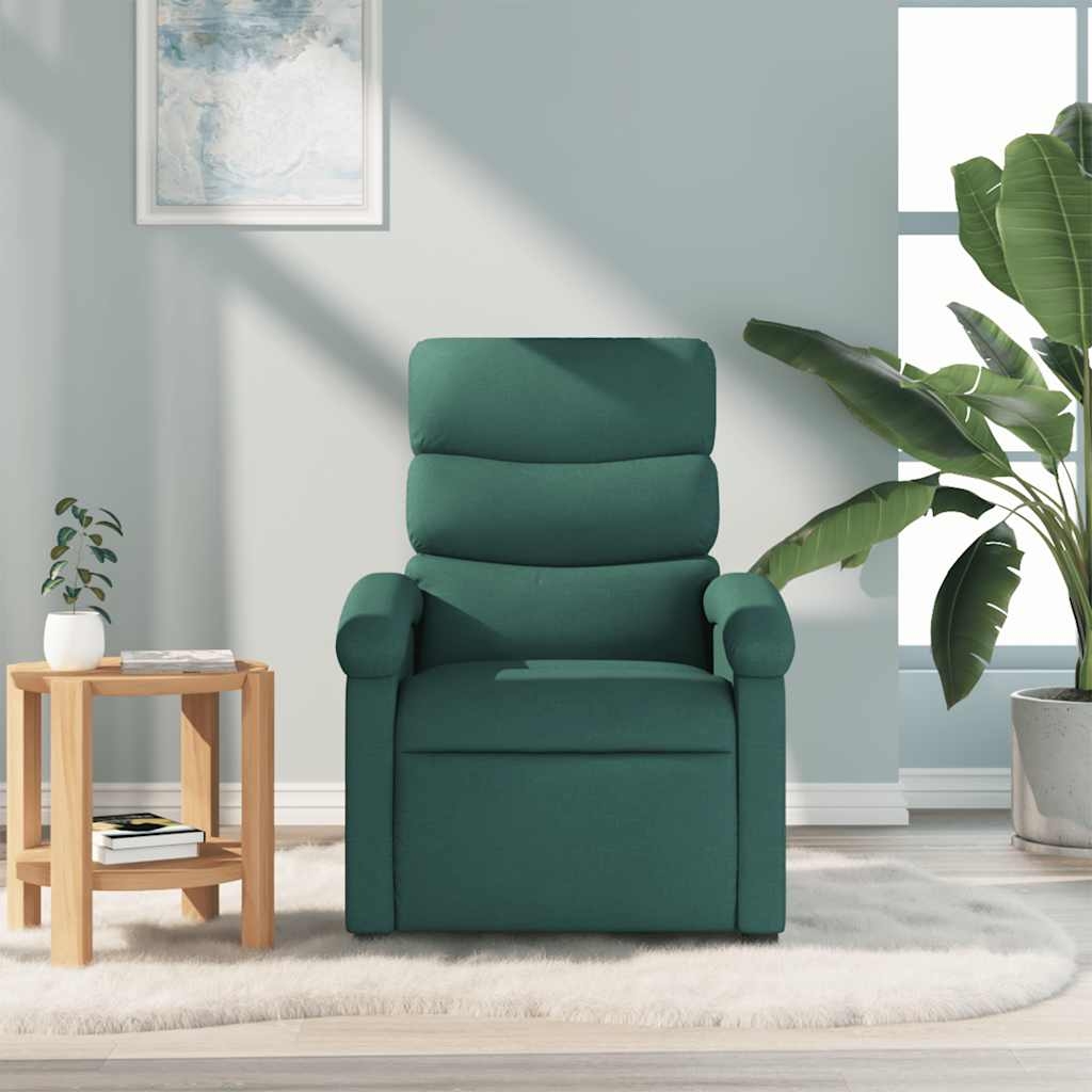 Lehne dich zurück und entspanne dich in diesem äußerst bequemen Massagesessel! Manuelle Liegefunktion: Dieser Ruhesessel lässt sich mittels des seitlichen Griffs verstellen. So kannst du das Fußteil und die Rückenlehne manuell in jede beliebige Position bringen, um die komfortabelste Position zu genießen. Die Rückenlehne lässt sich max. 135 Grad nach hinten verstellen. Durch einfaches Ziehen am Griff wird sie schnell in die ursprüngliche Position zurückgestellt.Vibrationsfunktion: Mit den 6 Massagepunkten kann man eine gezielte Massage genießen. Außerdem ermöglicht die mitgelieferte Handsteuerung die Auswahl verschiedener Massageprogramme. Die Massagefunktion wird über den USB-Anschluss mit Strom betrieben, aber das zugelassene 5V-USB-Netzteil ist nicht im Lieferumfang enthalten.Bequemes Sitzerlebnis: Die dick gepolsterte Sitzfläche, die Rückenlehne und die breiten Armlehnen sorgen für ein behagliches und wohliges Sitzgefühl. Der Bezug aus Stoff weist eine schlichte und saubere Optik auf und ist auch atmungsaktiv und langlebig.Praktische Seitentasche: Dieser Sessel verfügt über eine Seitentasche, in der du deine Fernbedienung oder andere wichtige Sachen griffbereit aufbewahren kannst.Solider und stabiler Rahmen: Der Rahmen aus Holz und Metall sorgt für eine solide Struktur und hohe Stabilität. Dieser TV-Sessel ist bequem und langlebig.