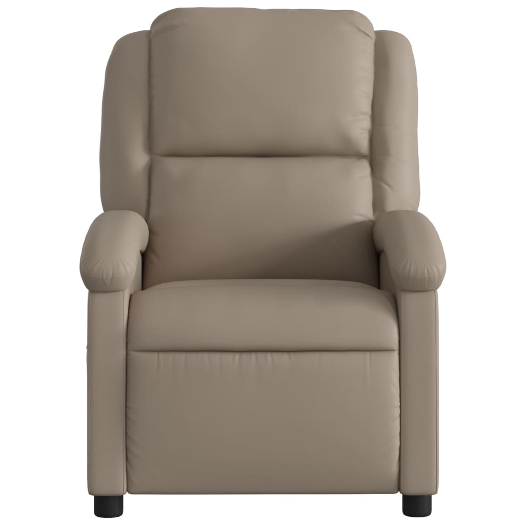 Lehne dich zurück und entspanne dich in diesem äußerst bequemen Massagesessel! Elektrische Liegefunktion: Dieser Relaxsessel ist mit einem Elektromotor ausgestattet, der Fußstütze und Rückenlehne durch einfaches Drücken des seitlichen Knopfes automatisch in jede gewünschte Position bringt. Diese Funktion ermöglicht eine maximale Neigung von 135 Grad. Darüber hinaus lässt sich die Rückenlehne auf Knopfdruck automatisch in die ursprünglichen Position zurückbringen.Vibrationsfunktion: Dank der 6 Massagepunkte genießt du eine gezielte Massage. Zudem lassen sich verschiedene Massageprogramme über die mitgelieferte Handsteuerung auswählen. Die Massagefunktion wird über den USB-Anschluss betrieben, der eine zertifizierte 5-V-USB-Stromquelle erfordert (nicht im Lieferumfang enthalten).Bequemes Sitzerlebnis: Die dick gepolsterte Sitzfläche, die Rückenlehne und die breiten, mit Kunstleder bezogenen Armlehnen sorgen für ein behagliches und angenehmes Sitzgefühl. Kunstleder ist ein äußerst langlebiges Material. Es ist schmutzabweisend und lässt sich mit einem feuchten Tuch einfach reinigen. Durch die glatte Oberfläche weist es die luxuriöse Schönheit von Echtleder auf.Praktische Seitentasche: Dieser Sessel verfügt über eine Seitentasche, in der du deine Fernbedienung oder andere wichtige Sachen griffbereit aufbewahren kannst.Solider und stabiler Rahmen: Der Rahmen aus Holz und Metall sorgt für eine solide Struktur und hohe Stabilität. Dieser TV-Sessel ist bequem und langlebig.