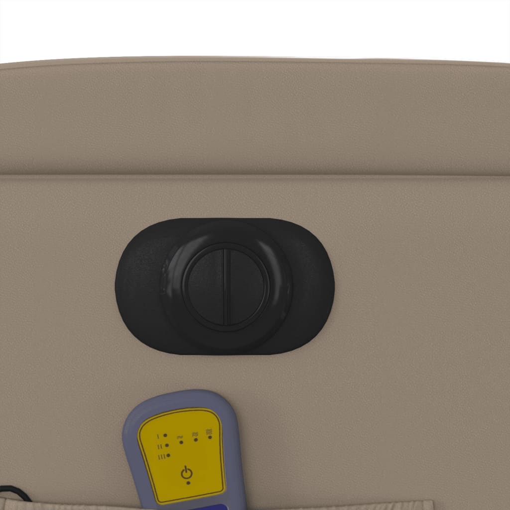 Lehne dich zurück und entspanne dich in diesem äußerst bequemen Massagesessel! Elektrische Liegefunktion: Dieser Relaxsessel ist mit einem Elektromotor ausgestattet, der Fußstütze und Rückenlehne durch einfaches Drücken des seitlichen Knopfes automatisch in jede gewünschte Position bringt. Diese Funktion ermöglicht eine maximale Neigung von 135 Grad. Darüber hinaus lässt sich die Rückenlehne auf Knopfdruck automatisch in die ursprünglichen Position zurückbringen.Vibrationsfunktion: Dank der 6 Massagepunkte genießt du eine gezielte Massage. Zudem lassen sich verschiedene Massageprogramme über die mitgelieferte Handsteuerung auswählen. Die Massagefunktion wird über den USB-Anschluss betrieben, der eine zertifizierte 5-V-USB-Stromquelle erfordert (nicht im Lieferumfang enthalten).Bequemes Sitzerlebnis: Die dick gepolsterte Sitzfläche, die Rückenlehne und die breiten, mit Kunstleder bezogenen Armlehnen sorgen für ein behagliches und angenehmes Sitzgefühl. Kunstleder ist ein äußerst langlebiges Material. Es ist schmutzabweisend und lässt sich mit einem feuchten Tuch einfach reinigen. Durch die glatte Oberfläche weist es die luxuriöse Schönheit von Echtleder auf.Praktische Getränkehalter und Seitentasche: Dieser Sessel verfügt über zwei praktische Getränkehalter und eine Seitentasche, in der du deine Fernbedienung oder andere wichtige Sachen griffbereit aufbewahren kannst.Solider und stabiler Rahmen: Der Rahmen aus Holz und Metall sorgt für eine solide Struktur und hohe Stabilität. Dieser TV-Sessel ist bequem und langlebig.