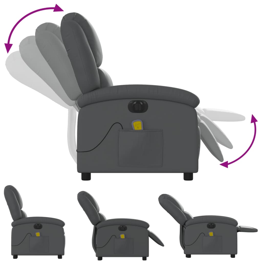 Lehne dich zurück und entspanne dich in diesem äußerst bequemen Massagesessel! Elektrische Liegefunktion: Dieser Relaxsessel ist mit einem Elektromotor ausgestattet, der Fußstütze und Rückenlehne durch einfaches Drücken des seitlichen Knopfes automatisch in jede gewünschte Position bringt. Diese Funktion ermöglicht eine maximale Neigung von 135 Grad. Darüber hinaus lässt sich die Rückenlehne auf Knopfdruck automatisch in die ursprünglichen Position zurückbringen.Vibrationsfunktion: Dank der 6 Massagepunkte genießt du eine gezielte Massage. Zudem lassen sich verschiedene Massageprogramme über die mitgelieferte Handsteuerung auswählen. Die Massagefunktion wird über den USB-Anschluss betrieben, der eine zertifizierte 5-V-USB-Stromquelle erfordert (nicht im Lieferumfang enthalten).Bequemes Sitzerlebnis: Die dick gepolsterte Sitzfläche, die Rückenlehne und die breiten, mit Kunstleder bezogenen Armlehnen sorgen für ein behagliches und angenehmes Sitzgefühl. Kunstleder ist ein äußerst langlebiges Material. Es ist schmutzabweisend und lässt sich mit einem feuchten Tuch einfach reinigen. Durch die glatte Oberfläche weist es die luxuriöse Schönheit von Echtleder auf.Praktische Seitentasche: Dieser Sessel verfügt über eine Seitentasche, in der du deine Fernbedienung oder andere wichtige Sachen griffbereit aufbewahren kannst.Solider und stabiler Rahmen: Der Rahmen aus Holz und Metall sorgt für eine solide Struktur und hohe Stabilität. Dieser TV-Sessel ist bequem und langlebig.