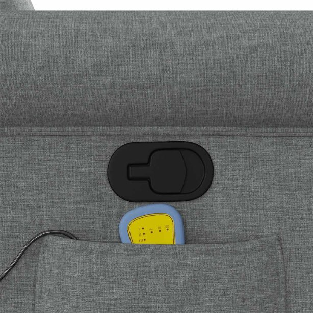 Lehne dich zurück und entspanne dich in diesem äußerst bequemen Massagesessel mit Aufstehhilfe! Elektrische Aufstehhilfe: Dieser Relaxsessel ist mit einem Elektromotor zum Anheben ausgestattet. Dank der Aufstehhilfe, die den gesamten Sessel nach oben bringt, kannst du ganz einfach auf Knopfdruck aufstehen, ohne deinen Rücken und deine Knie zu belasten.Manuelle Liegefunktion: Dieser Ruhesessel lässt sich mittels des Griffs an der rechten Seite verstellen. So kannst du das Fußteil und die Rückenlehne manuell in jede beliebige Position bringen, um höchsten Komfort zu genießen. Die Rückenlehne lässt sich max. 135 Grad nach hinten verstellen. Durch einfaches Ziehen lässt sie sich schnell wieder in die ursprüngliche Position bringen.Vibrationsfunktion: Dank der 6 Massagepunkte genießt du eine gezielte Massage. Zudem lassen sich verschiedene Massageprogramme über die mitgelieferte Handsteuerung auswählen. Die Massagefunktion wird über den USB-Anschluss betrieben, der eine zertifizierte 5-V-USB-Stromquelle erfordert (nicht im Lieferumfang enthalten).Bequemes Sitzerlebnis: Die dick gepolsterte Sitzfläche, die Rückenlehne und die breiten Armlehnen sorgen für ein behagliches und wohliges Sitzgefühl. Der Bezug aus Stoff weist eine schlichte und saubere Optik auf und ist auch atmungsaktiv und langlebig.Praktische Seitentasche: Dieser Sessel verfügt über eine Seitentasche, in der du deine Fernbedienung oder andere wichtige Sachen griffbereit aufbewahren kannst.Solider und stabiler Rahmen: Der Rahmen aus Holz und Metall sorgt für eine solide Struktur und hohe Stabilität. Dieser TV-Sessel ist bequem und langlebig.