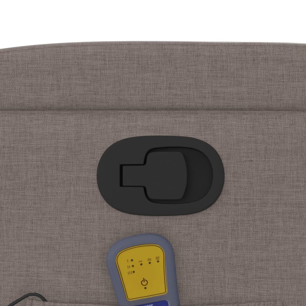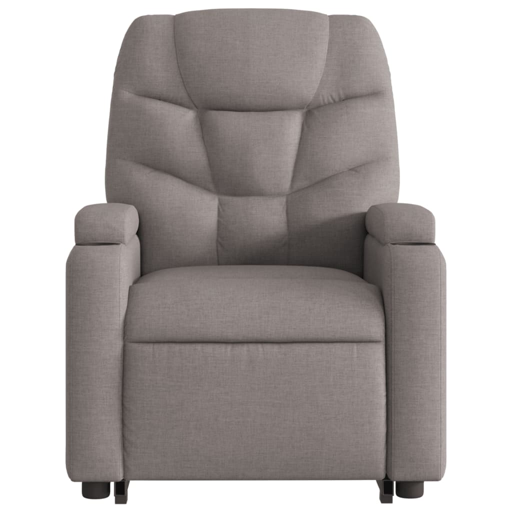 Lehne dich zurück und entspanne dich in diesem äußerst bequemen Massagesessel mit Aufstehhilfe! Elektrische Aufstehhilfe: Dieser Relaxsessel ist mit einem Elektromotor zum Anheben ausgestattet. Dank der Aufstehhilfe, die den gesamten Sessel nach oben bringt, kannst du ganz einfach auf Knopfdruck aufstehen, ohne deinen Rücken und deine Knie zu belasten.Manuelle Liegefunktion: Dieser Ruhesessel lässt sich mittels des Griffs an der rechten Seite verstellen. So kannst du das Fußteil und die Rückenlehne manuell in jede beliebige Position bringen, um höchsten Komfort zu genießen. Die Rückenlehne lässt sich max. 135 Grad nach hinten verstellen. Durch einfaches Ziehen lässt sie sich schnell wieder in die ursprüngliche Position bringen.Vibrationsfunktion: Dank der 6 Massagepunkte genießt du eine gezielte Massage. Zudem lassen sich verschiedene Massageprogramme über die mitgelieferte Handsteuerung auswählen. Die Massagefunktion wird über den USB-Anschluss betrieben, der eine zertifizierte 5-V-USB-Stromquelle erfordert (nicht im Lieferumfang enthalten).Bequemes Sitzerlebnis: Die dick gepolsterte Sitzfläche, die Rückenlehne und die breiten Armlehnen sorgen für ein behagliches und wohliges Sitzgefühl. Der Bezug aus Stoff weist eine schlichte und saubere Optik auf und ist auch atmungsaktiv und langlebig.Praktische Getränkehalter und Seitentasche: Dieser Sessel verfügt über zwei praktische Becherhalter und eine Seitentasche, in der du wichtige Sachen griffbereit aufbewahren kannst.Solider und stabiler Rahmen: Der Rahmen aus Holz und Metall sorgt für eine solide Struktur und hohe Stabilität. Dieser TV-Sessel ist bequem und langlebig.