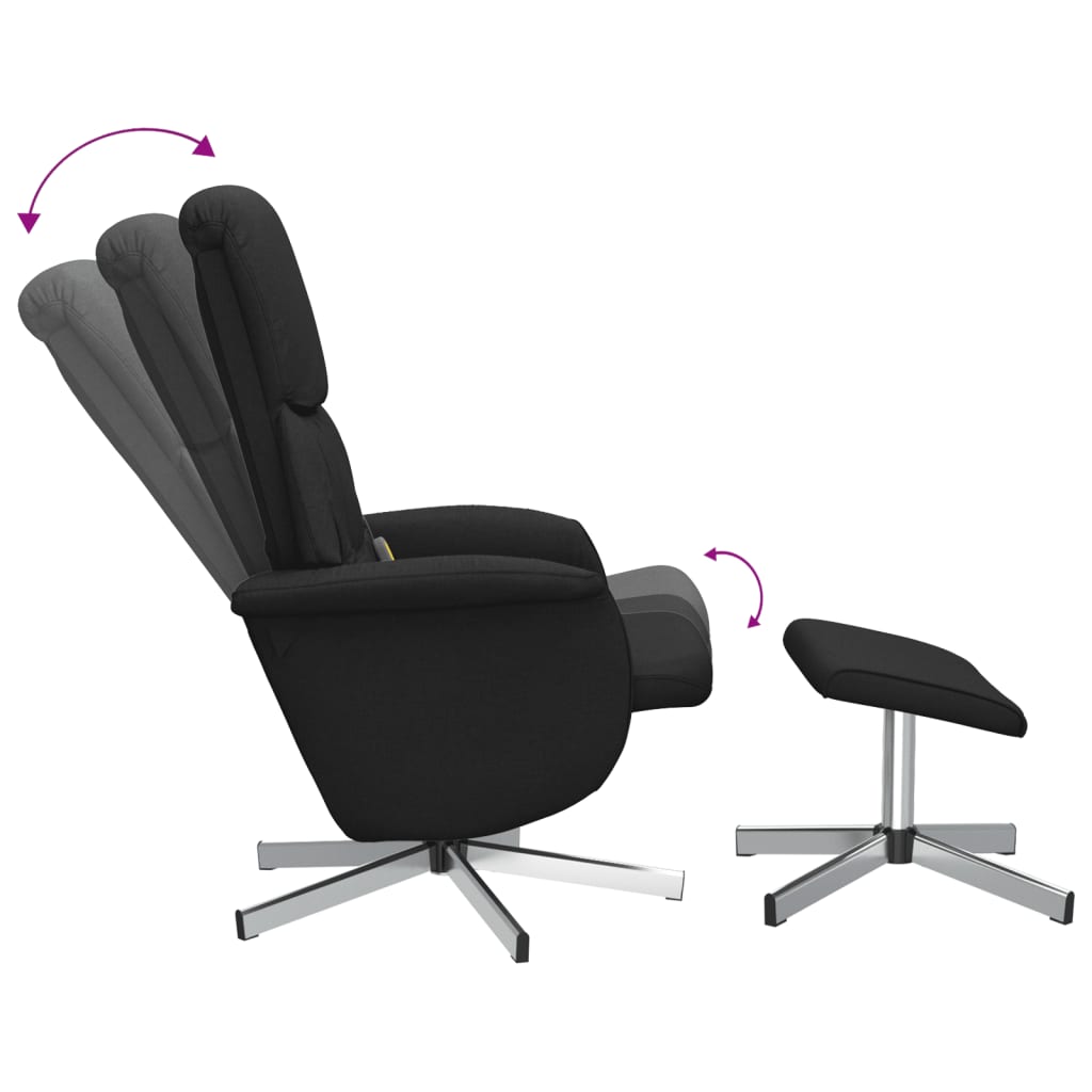 Lehne dich zurück und entspanne dich in diesem äußerst bequemen Massagesessel! Vibrationsfunktion: Dank der 6 Massagepunkte genießt du eine gezielte Massage. Zudem lassen sich verschiedene Massageprogramme über die mitgelieferte Handsteuerung auswählen. Die Massagefunktion wird über den USB-Anschluss betrieben, der eine zertifizierte 5-V-USB-Stromquelle erfordert (nicht im Lieferumfang enthalten).Manuelle Liegefunktion: Der Massagesessel ist mit Liegefunktion ausgestattet, sodass du Rückenlehne nach Belieben einstellen kannst. Die Rückenlehne kann von 105 bis 125 Grad geneigt werden.Um 360 Grad drehbar: Der Massagesessel lässt sich um 360 Grad schwenken, was ihm Flexibilität verleiht.Bequemes Sitzerlebnis: Die Sitzfläche, die Rückenlehne und die breiten Armlehnen sind dick gepolstert und mit Stoff bezogen, um für ein gemütliches und warmes Sitzgefühl zu sorgen. Der zusätzliche Hocker eignet sich zum Ausruhen der Füße beim Sitzen auf dem Sessel, was den Sessel zu einer äußerst bequem Sitzgelegenheit für jeden Anlass macht.Solides und stabiles Gestell: Das Gestell aus Sperrholz und Metall sorgt für Robustheit. Dieser Massagesessel ist bequem und langlebig. Gut zu wissen:Um Platz zu sparen, werden einige Teile oder Kissen in die Möbel gepackt – überprüfen Sie die Reißverschlussfächer oder unter dem Sitzbezug auf versteckte Komponenten.