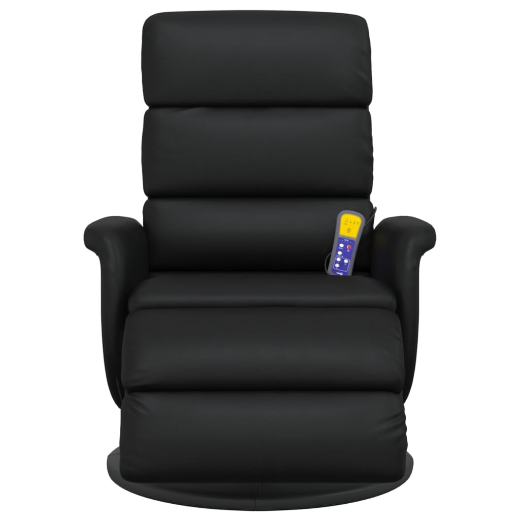 Lehne dich zurück und entspanne dich in diesem äußerst bequemen Massagesessel! Manuell verstellbar: Der Massagesessel ist mit Liegefunktion ausgestattet, sodass du die Rückenlehne und das Fußteil je nach Belieben einstellen kannst.Vibrationsfunktion: Dank der 6 Massagepunkte genießt du eine gezielte Massage. Zudem lassen sich verschiedene Massageprogramme über die mitgelieferte Handsteuerung auswählen. Die Massagefunktion wird über den USB-Anschluss betrieben, der eine zertifizierte 5-V-USB-Stromquelle erfordert (nicht im Lieferumfang enthalten).Um 360 Grad drehbar: Der verstellbare Sessel lässt sich um 360 Grad drehen, was Flexibilität bietet.Bequemes Sitzerlebnis: Der dick gepolsterte Sitz, die Rückenlehne und die Armlehnen sind mit Kunstleder bezogen und sorgen für ein behagliches Sitzgefühl. Das Kunstleder ist ein äußerst strapazierfähiges Material. Es ist schmutzabweisend und lässt sich mit einem feuchten Tuch einfach reinigen. Seine glatte Oberfläche verleiht dem Material ein luxuriöses Aussehen und die Schönheit von echtem Leder.Robustes und stabiles Sessel: Der Rahmen aus Sperrholz und Metall sorgt für Robustheit und hohe Stabilität. Das runde Gestell gewährleistet einen festen Halt auf dem Boden und somit optimale Stabilität.