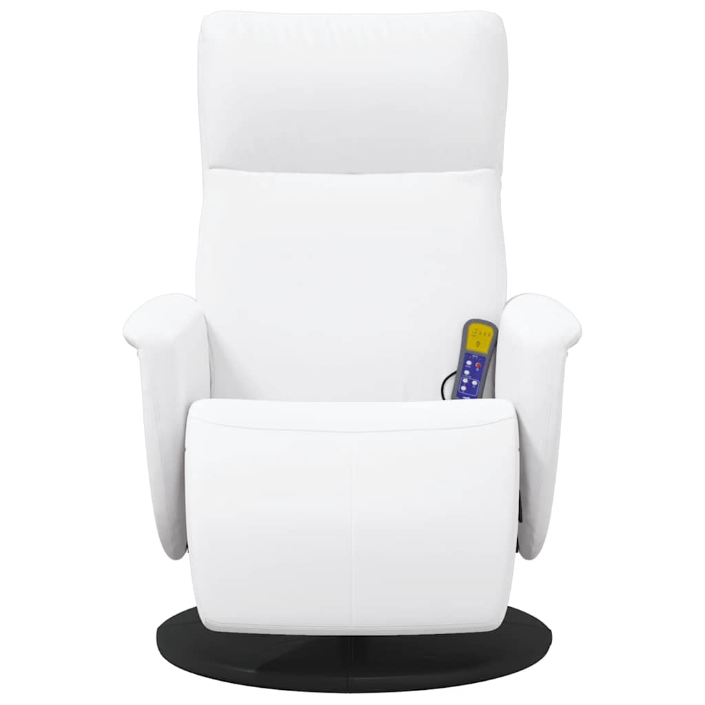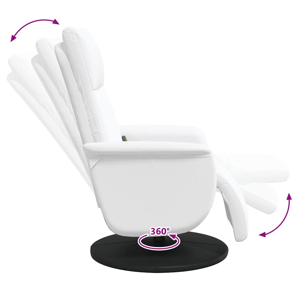 Lehne dich zurück und entspanne dich in diesem äußerst bequemen Massagesessel! Vibrationsfunktion: Dank der 6 Massagepunkte genießt du eine gezielte Massage. Zudem lassen sich verschiedene Massageprogramme über die mitgelieferte Handsteuerung auswählen. Die Massagefunktion wird über den USB-Anschluss betrieben, der eine zertifizierte 5-V-USB-Stromquelle erfordert (nicht im Lieferumfang enthalten).Verstellbare Rückenlehne und Fußstütze: Dieser Massagesessel ist mit Liegefunktion ausgestattet, sodass du Rückenlehne und Fußstütze nach Belieben einstellen kannst. Die Rückenlehne kann von 105 bis 125 Grad geneigt werden.Um 360 Grad drehbar: Der Massagesessel lässt sich um 360 Grad schwenken, was ihm Flexibilität verleiht.Bequemes Sitzerlebnis: Der dick gepolsterte Sitz, die Rückenlehne und die breiten, mit Kunstleder bezogenen Armlehnen sorgen für ein behagliches und angenehmes Sitzgefühl. Künstliches Leder ist ein äußerst langlebiges Material. Es ist schmutzabweisend und lässt sich mit einem feuchten Tuch einfach reinigen. Durch die glatte Oberfläche weist es die luxuriöse Schönheit von Echtleder auf.Solider und stabiler Rahmen: Der Rahmen aus Sperrholz und Metall sorgt für Robustheit und hohe Stabilität. Dieser Massagesessel ist bequem und langlebig. Gut zu wissen:Um Platz zu sparen, werden einige Teile oder Kissen in die Möbel gepackt – überprüfen Sie die Reißverschlussfächer oder unter dem Sitzbezug auf versteckte Komponenten.