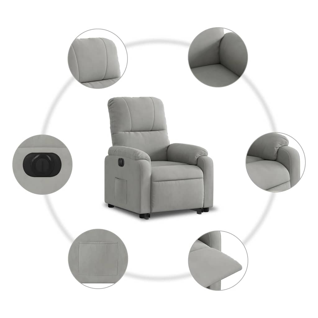 Lehne dich zurück und entspanne dich in diesem äußerst bequemen elektrischen Relaxsessel mit Aufstehhilfe! Elektrische Aufstehhilfe: Dieser Relaxsessel ist mit einem Elektromotor zum Anheben ausgestattet. Dank der Aufstehhilfe, die den gesamten Sessel nach oben bringt, kannst du ganz einfach auf Knopfdruck aufstehen, ohne deinen Rücken und deine Knie zu belasten.Elektrische Liegefunktion: Dieser Relaxsessel ist mit einem Elektromotor ausgestattet, der Fußstütze und Rückenlehne durch einfaches Drücken des seitlichen Knopfes automatisch in jede gewünschte Position bringt. Diese Funktion ermöglicht eine maximale Neigung von 135 Grad. Darüber hinaus lässt sich die Rückenlehne auf Knopfdruck automatisch in die ursprünglichen Position zurückbringen.Bequemes Sitzerlebnis: Die dick gepolsterte Sitzfläche, die Rückenlehne und die breiten Armlehnen sind mit Mikrofaser bezogen, was für ein behagliches, warmes und komfortables Sitzgefühl sorgt. Mikrofaser ist ein synthetisches Gewebe aus ultra feinen Fasern, die besonders unempfindlich gegen Flecken sind. Mikrofasergewebe ist aufgrund seiner Langlebigkeit und einfachen Reinigung eine gute Wahl für Möbelpolster.Praktische Seitentasche: Dieser Sessel verfügt über eine Seitentasche, in der du wichtige Sachen griffbereit aufbewahren kannst.Solider und stabiler Rahmen: Der Rahmen aus Holz und Metall sorgt für eine solide Struktur und hohe Stabilität. Dieser TV-Sessel ist bequem und langlebig.