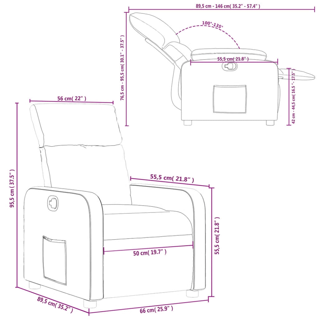 Lehne sich zurück und entspanne sich in diesem äußerst bequemen Relaxsessel! Manuelle Liegefunktion: Dieser Ruhesessel lässt sich mittels des Griffs an der rechten Seite verstellen. So kannst du das Fußteil und die Rückenlehne manuell in jede beliebige Position bringen, um höchsten Komfort zu genießen. Die Rückenlehne lässt sich max. 135 Grad nach hinten verstellen. Durch einfaches Ziehen lässt sie sich schnell wieder in die ursprüngliche Position bringen.Bequemes Sitzerlebnis: Die dick gepolsterte Sitzfläche, die Rückenlehne und die breiten, mit Kunstleder bezogenen Armlehnen sorgen für ein behagliches und angenehmes Sitzgefühl. Kunstleder ist ein äußerst langlebiges Material. Es ist schmutzabweisend und lässt sich mit einem feuchten Tuch einfach reinigen. Durch die glatte Oberfläche weist es die luxuriöse Schönheit von Echtleder auf.Praktische Seitentasche: Dieser Sessel verfügt über eine Seitentasche, in der du wichtige Sachen griffbereit aufbewahren kannst.Solider und stabiler Rahmen: Der Rahmen aus Holz und Metall sorgt für eine solide Struktur und hohe Stabilität. Dieser TV-Sessel ist bequem und langlebig.