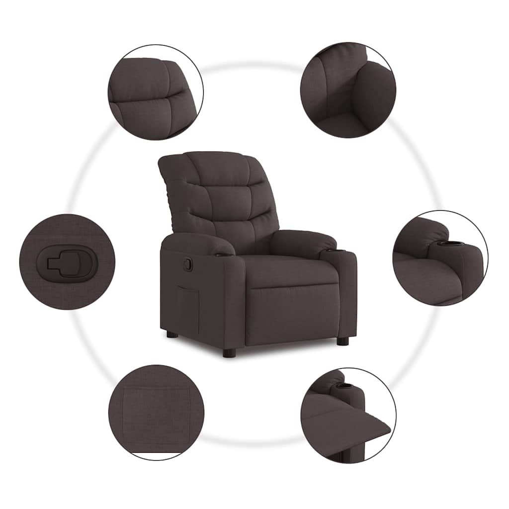 Lehne sich zurück und entspanne sich in diesem äußerst bequemen Relaxsessel! Manuelle Liegefunktion: Dieser Ruhesessel lässt sich mittels des Griffs an der rechten Seite verstellen. So kannst du das Fußteil und die Rückenlehne manuell in jede beliebige Position bringen, um höchsten Komfort zu genießen. Die Rückenlehne lässt sich max. 135 Grad nach hinten verstellen. Durch einfaches Ziehen lässt sie sich schnell wieder in die ursprüngliche Position bringen.Bequemes Sitzerlebnis: Die dick gepolsterte Sitzfläche, die Rückenlehne und die breiten Armlehnen sorgen für ein behagliches und wohliges Sitzgefühl. Der Bezug aus Stoff weist eine schlichte und saubere Optik auf und ist auch atmungsaktiv und langlebig.Praktische Getränkehalter und Seitentasche: Dieser Sessel verfügt über zwei praktische Becherhalter und eine Seitentasche, in der du wichtige Sachen griffbereit aufbewahren kannst.Solider und stabiler Rahmen: Der Rahmen aus Holz und Metall sorgt für eine solide Struktur und hohe Stabilität. Dieser TV-Sessel ist bequem und langlebig.