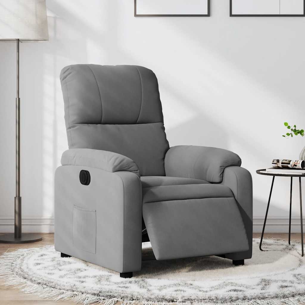 Lehne dich zurück und entspanne dich in diesem äußerst bequemen Fernsehsessel! Elektrische Liegefunktion: Dieser Relaxsessel ist mit einem Elektromotor ausgestattet, der Fußstütze und Rückenlehne durch einfaches Drücken des seitlichen Knopfes automatisch in jede gewünschte Position bringt. Diese Funktion ermöglicht eine maximale Neigung von 135 Grad. Darüber hinaus lässt sich die Rückenlehne auf Knopfdruck automatisch in die ursprünglichen Position zurückbringen.Bequemes Sitzerlebnis: Die dick gepolsterte Sitzfläche, die Rückenlehne und die breiten Armlehnen sind mit Mikrofaser bezogen, was für ein behagliches, warmes und komfortables Sitzgefühl sorgt. Mikrofaser ist ein synthetisches Gewebe aus ultra feinen Fasern, die besonders unempfindlich gegen Flecken sind. Mikrofasergewebe ist aufgrund seiner Langlebigkeit und einfachen Reinigung eine gute Wahl für Möbelpolster.Praktische Seitentasche: Dieser Sessel verfügt über eine Seitentasche, in der du wichtige Sachen griffbereit aufbewahren kannst.Solider und stabiler Rahmen: Der Rahmen aus Holz und Metall sorgt für eine solide Struktur und hohe Stabilität. Dieser TV-Sessel ist bequem und langlebig.