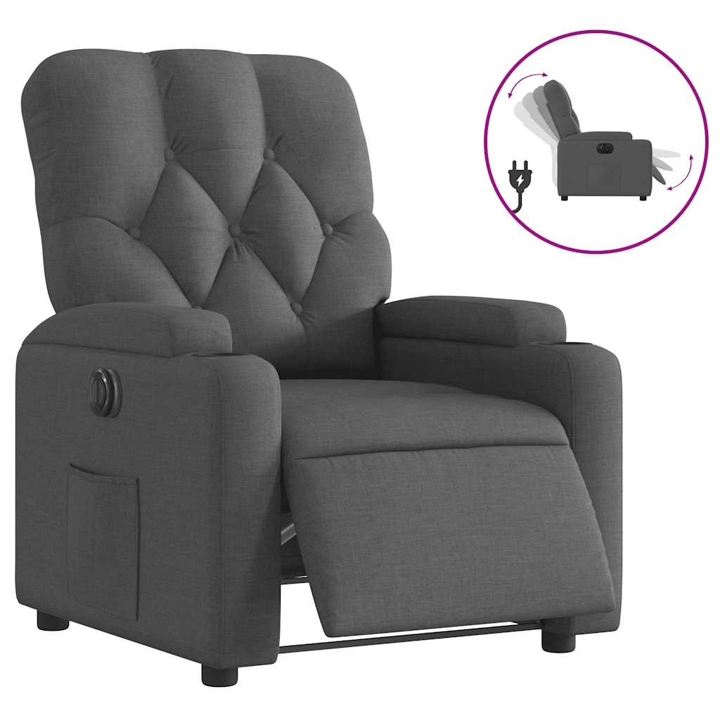 Lehne dich zurück und entspanne dich in diesem äußerst bequemen Fernsehsessel! Elektrische Liegefunktion: Dieser Relaxsessel ist mit einem Elektromotor ausgestattet, der Fußstütze und Rückenlehne durch einfaches Drücken des seitlichen Knopfes automatisch in jede gewünschte Position bringt. Diese Funktion ermöglicht eine maximale Neigung von 135 Grad. Darüber hinaus lässt sich die Rückenlehne auf Knopfdruck automatisch in die ursprünglichen Position zurückbringen.Bequemes Sitzerlebnis: Die dick gepolsterte Sitzfläche, die Rückenlehne und die breiten Armlehnen sorgen für ein behagliches und wohliges Sitzgefühl. Der Bezug aus Stoff weist eine schlichte und saubere Optik auf und ist auch atmungsaktiv und langlebig.Praktische Getränkehalter und Seitentasche: Dieser Sessel verfügt über zwei praktische Becherhalter und eine Seitentasche, in der du wichtige Sachen griffbereit aufbewahren kannst.Solider und stabiler Rahmen: Der Rahmen aus Holz und Metall sorgt für eine solide Struktur und hohe Stabilität. Dieser TV-Sessel ist bequem und langlebig.