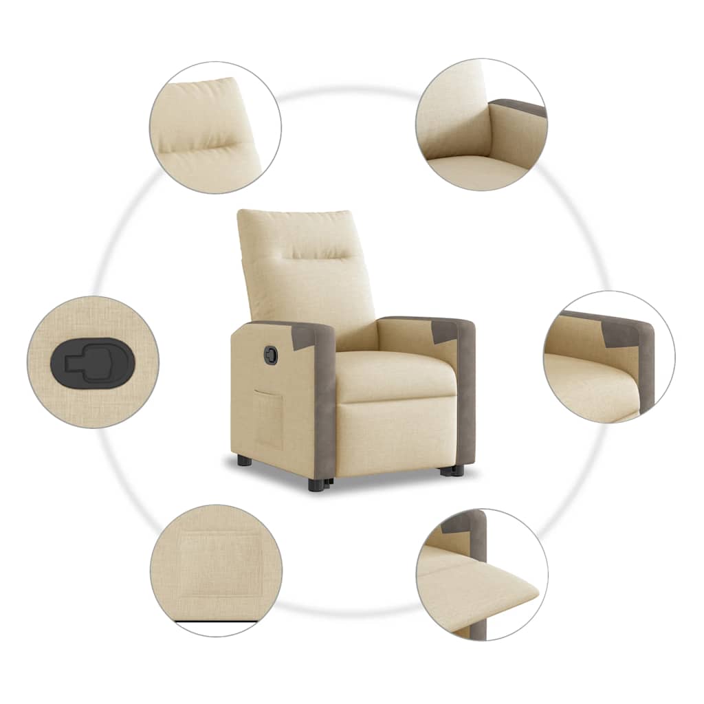 Lehne dich zurück und entspanne dich in diesem äußerst bequemen Relaxsessel mit Aufstehhilfe! Elektrische Aufstehhilfe: Dieser Relaxsessel ist mit einem Elektromotor zum Anheben ausgestattet. Dank der Aufstehhilfe, die den gesamten Sessel nach oben bringt, kannst du ganz einfach auf Knopfdruck aufstehen, ohne deinen Rücken und deine Knie zu belasten.Manuelle Liegefunktion: Dieser Ruhesessel lässt sich mittels des Griffs an der rechten Seite verstellen. So kannst du das Fußteil und die Rückenlehne manuell in jede beliebige Position bringen, um höchsten Komfort zu genießen. Die Rückenlehne lässt sich max. 135 Grad nach hinten verstellen. Durch einfaches Ziehen lässt sie sich schnell wieder in die ursprüngliche Position bringen.Bequemes Sitzerlebnis: Die dick gepolsterte Sitzfläche, die Rückenlehne und die breiten Armlehnen sorgen für ein behagliches und wohliges Sitzgefühl. Der Bezug aus Stoff weist eine schlichte und saubere Optik auf und ist auch atmungsaktiv und langlebig.Praktische Seitentasche: Dieser Sessel verfügt über eine Seitentasche, in der du wichtige Sachen griffbereit aufbewahren kannst.Solider und stabiler Rahmen: Der Rahmen aus Holz und Metall sorgt für eine solide Struktur und hohe Stabilität. Dieser TV-Sessel ist bequem und langlebig.