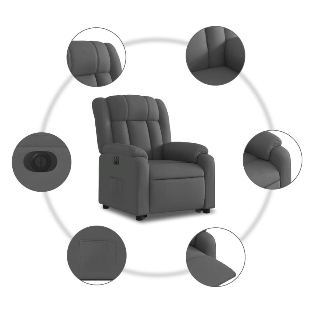Lehne dich zurück und entspanne dich in diesem äußerst bequemen elektrischen Relaxsessel mit Aufstehhilfe! Elektrische Aufstehhilfe: Dieser Relaxsessel ist mit einem Elektromotor zum Anheben ausgestattet. Dank der Aufstehhilfe, die den gesamten Sessel nach oben bringt, kannst du ganz einfach auf Knopfdruck aufstehen, ohne deinen Rücken und deine Knie zu belasten. Elektrische Liegefunktion: Dieser Relaxsessel ist mit einem Elektromotor ausgestattet, der Fußstütze und Rückenlehne durch einfaches Drücken des seitlichen Knopfes automatisch in jede gewünschte Position bringt. Diese Funktion ermöglicht eine maximale Neigung von 135 Grad. Darüber hinaus lässt sich die Rückenlehne auf Knopfdruck automatisch in die ursprünglichen Position zurückbringen. Bequemes Sitzerlebnis: Die dick gepolsterte Sitzfläche, die Rückenlehne und die breiten Armlehnen sorgen für ein behagliches und wohliges Sitzgefühl. Der Bezug aus Stoff weist eine schlichte und saubere Optik auf und ist auch atmungsaktiv und langlebig. Praktische Seitentasche: Dieser Sessel verfügt über eine Seitentasche, in der du wichtige Sachen griffbereit aufbewahren kannst. Solider und stabiler Rahmen: Der Rahmen aus Holz und Metall sorgt für eine solide Struktur und hohe Stabilität. Dieser TV-Sessel ist bequem und langlebig.